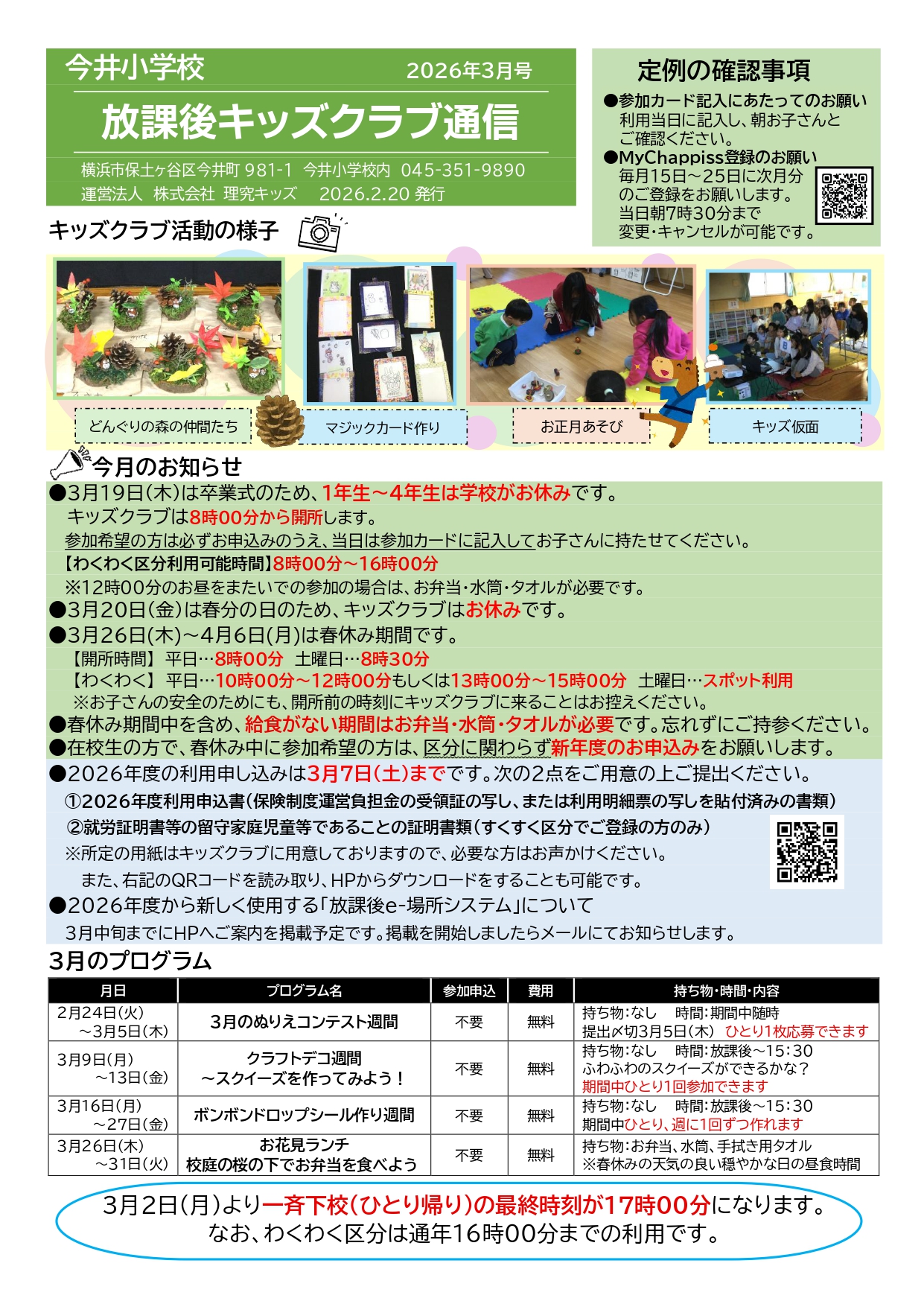 - キッズクラブ運営方針(PDFダウンロード) ※2026年度「運営方針」更新