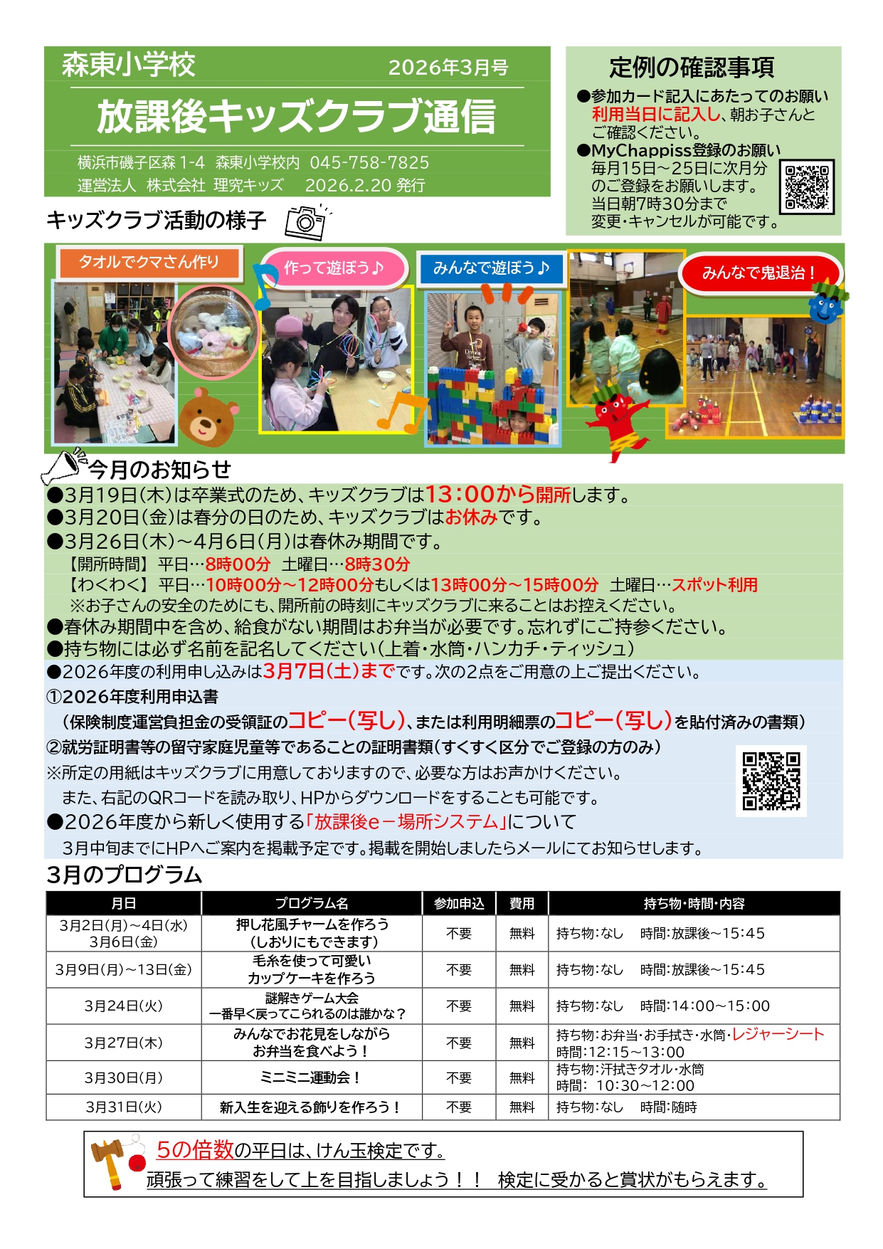 - キッズクラブ運営方針(PDFダウンロード) ※2026年度「運営方針」更新