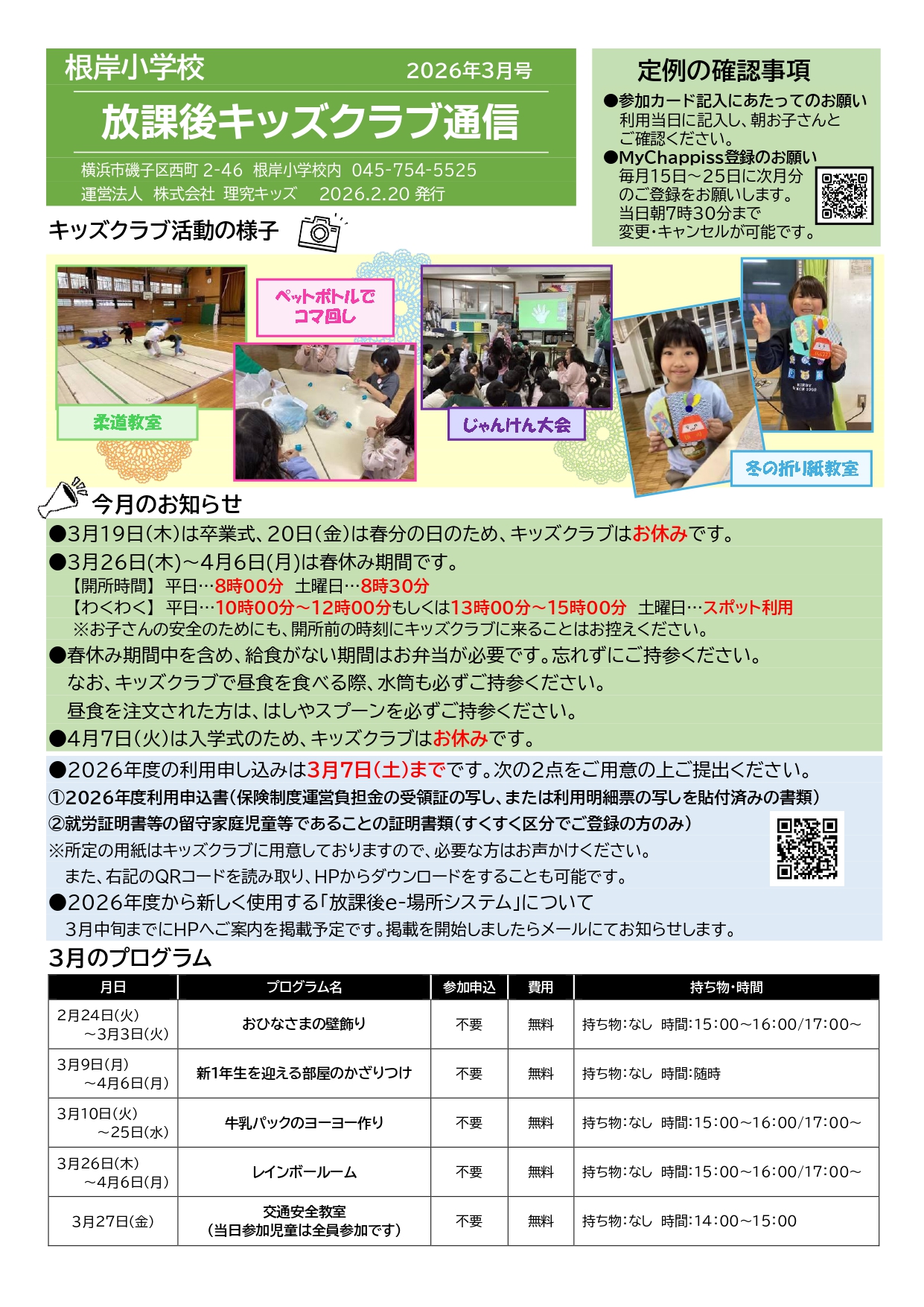 - キッズクラブ運営方針(PDFダウンロード) ※2026年度「運営方針」更新