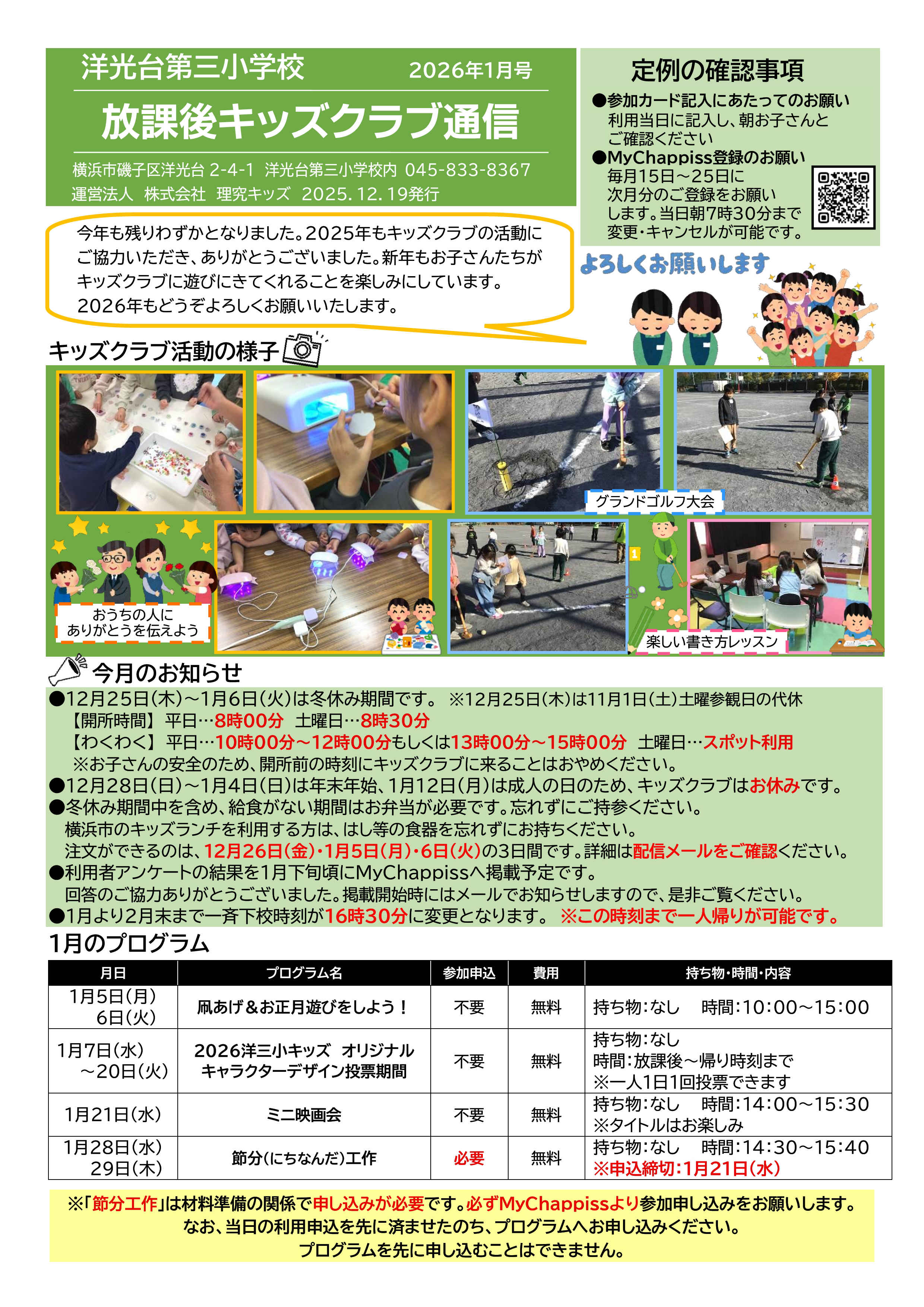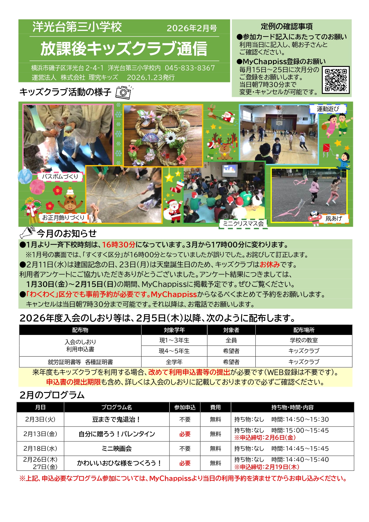 ※交通機関が不通となる場合もありますので、できるだけ早いお迎えをお願いします。※特別警報発表時は帰宅の安全が確保されるまで、お子さんは利用区分にかかわらず、放課後キッズクラブで留め置きとなります。