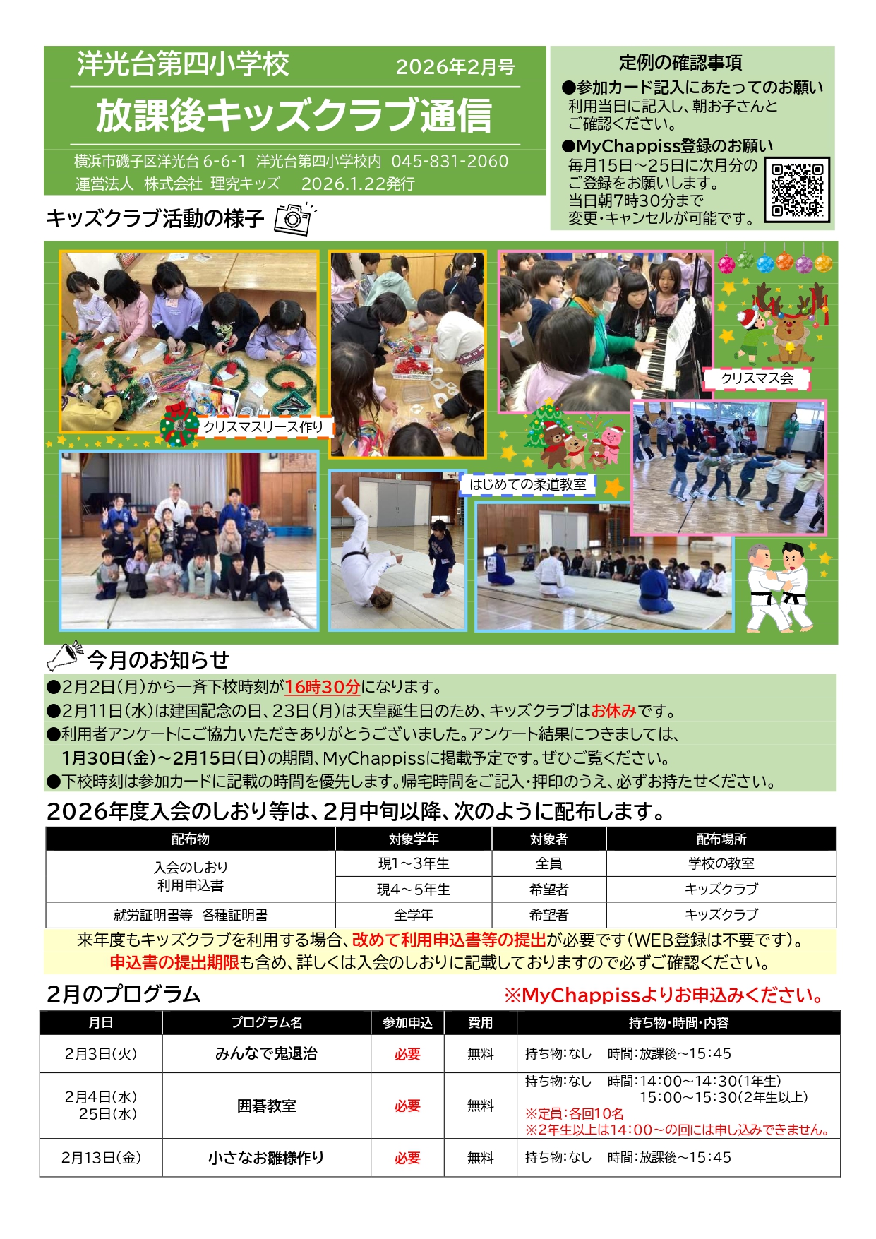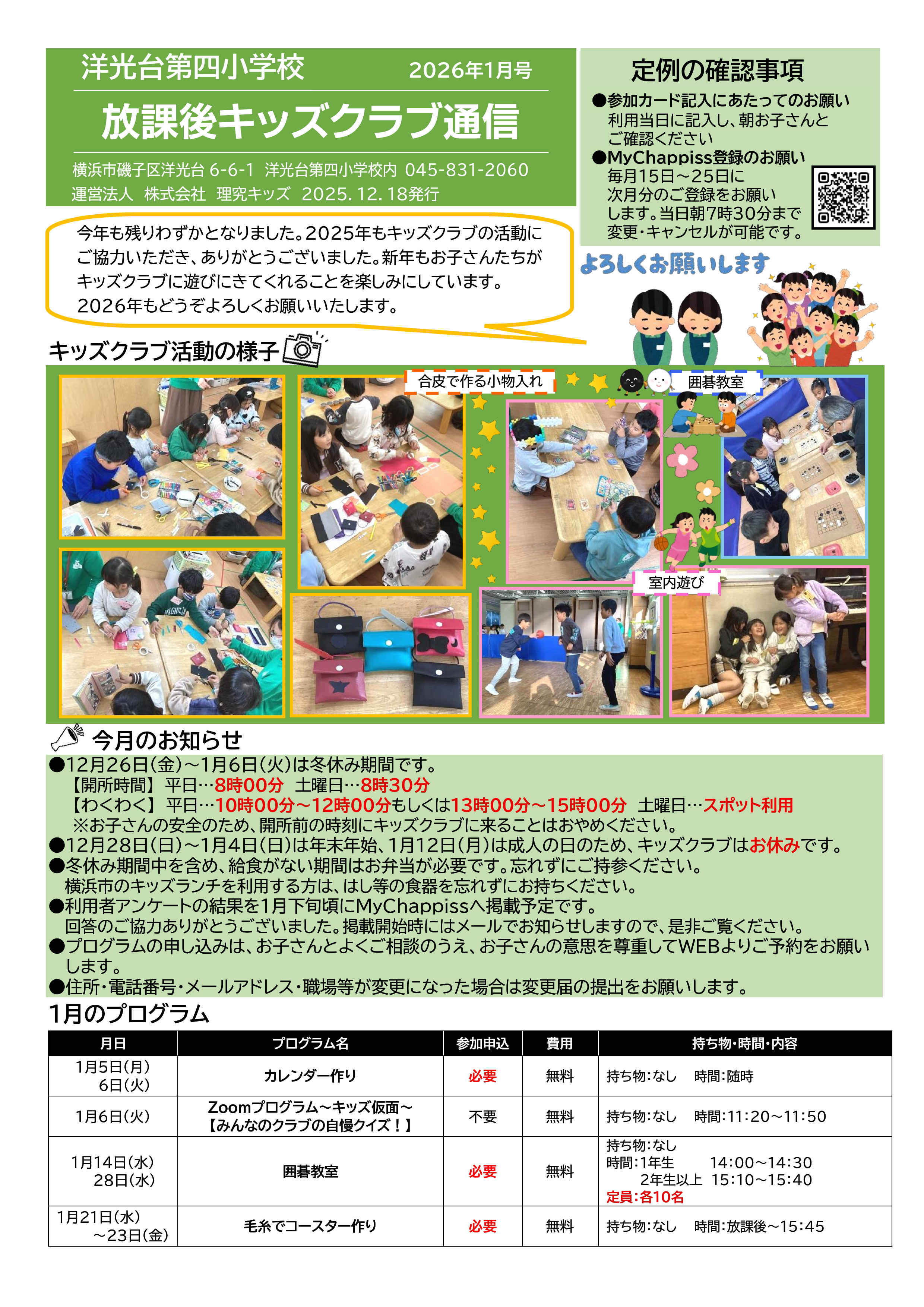 警報発表時等で通常と開所時間が異なる場合は、スタッフが放課後キッズクラブに到着してから利用可能になります。受け入れ可能になり次第、メールにてお知らせします。