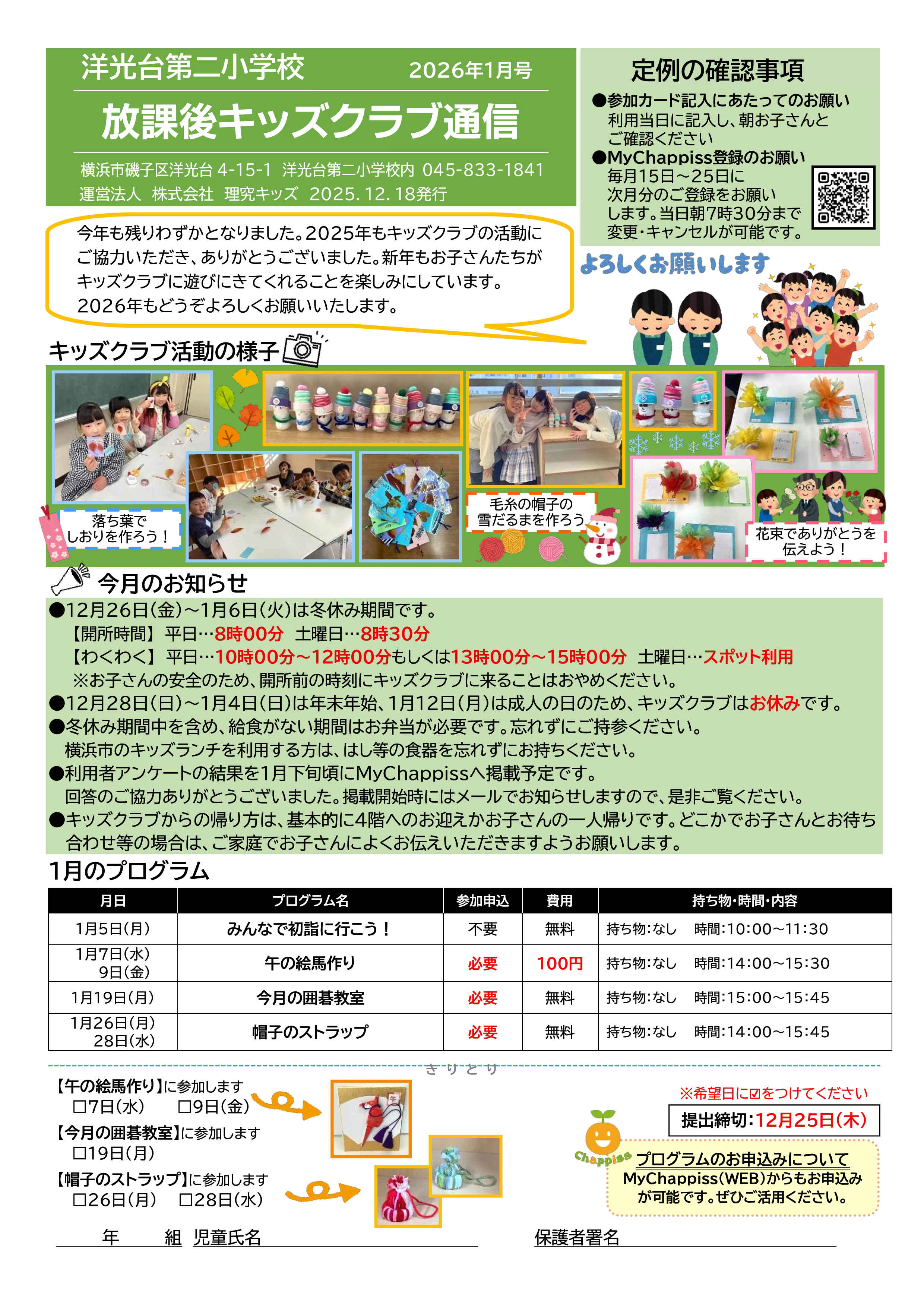 今月の放課後キッズクラブ通信