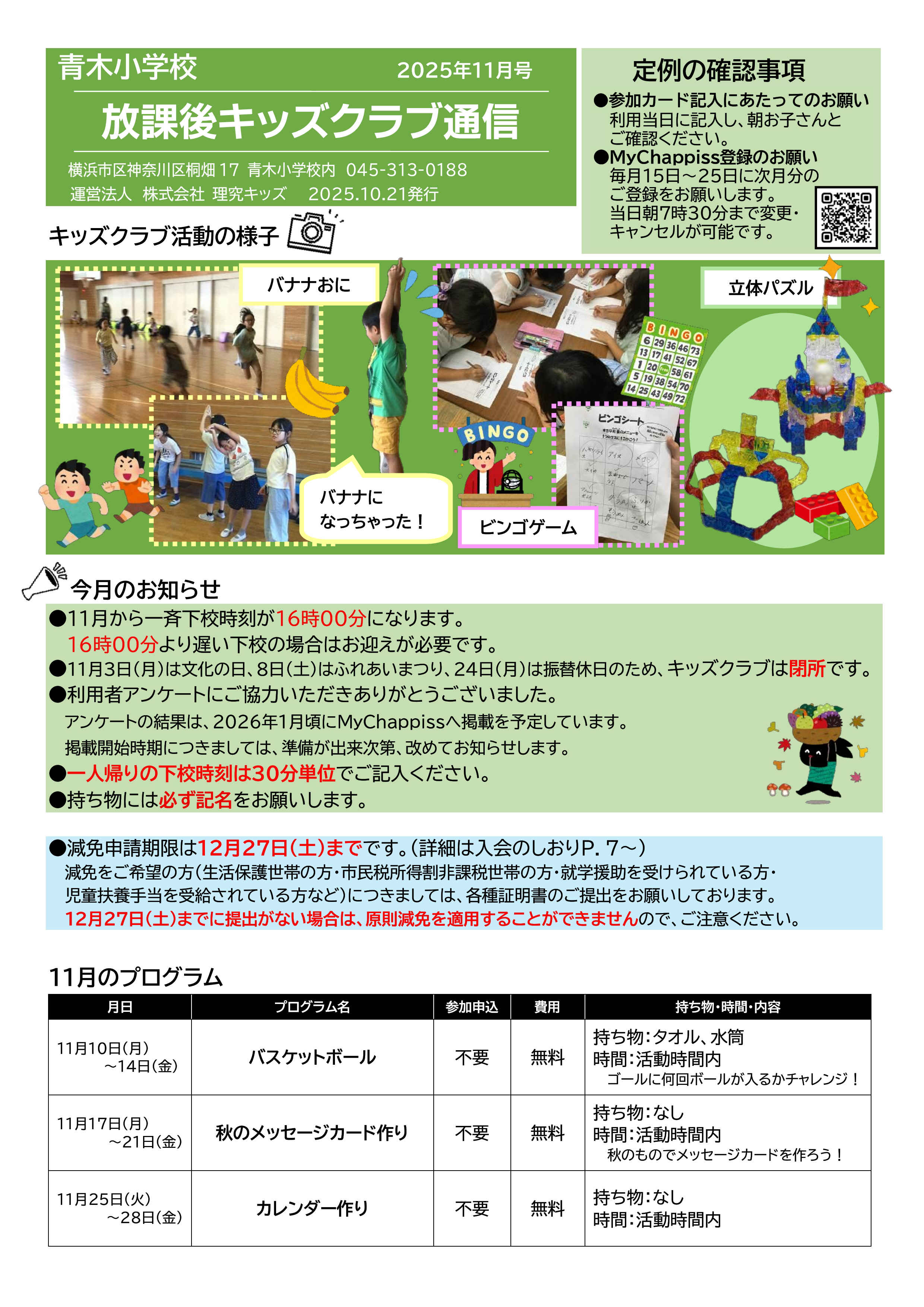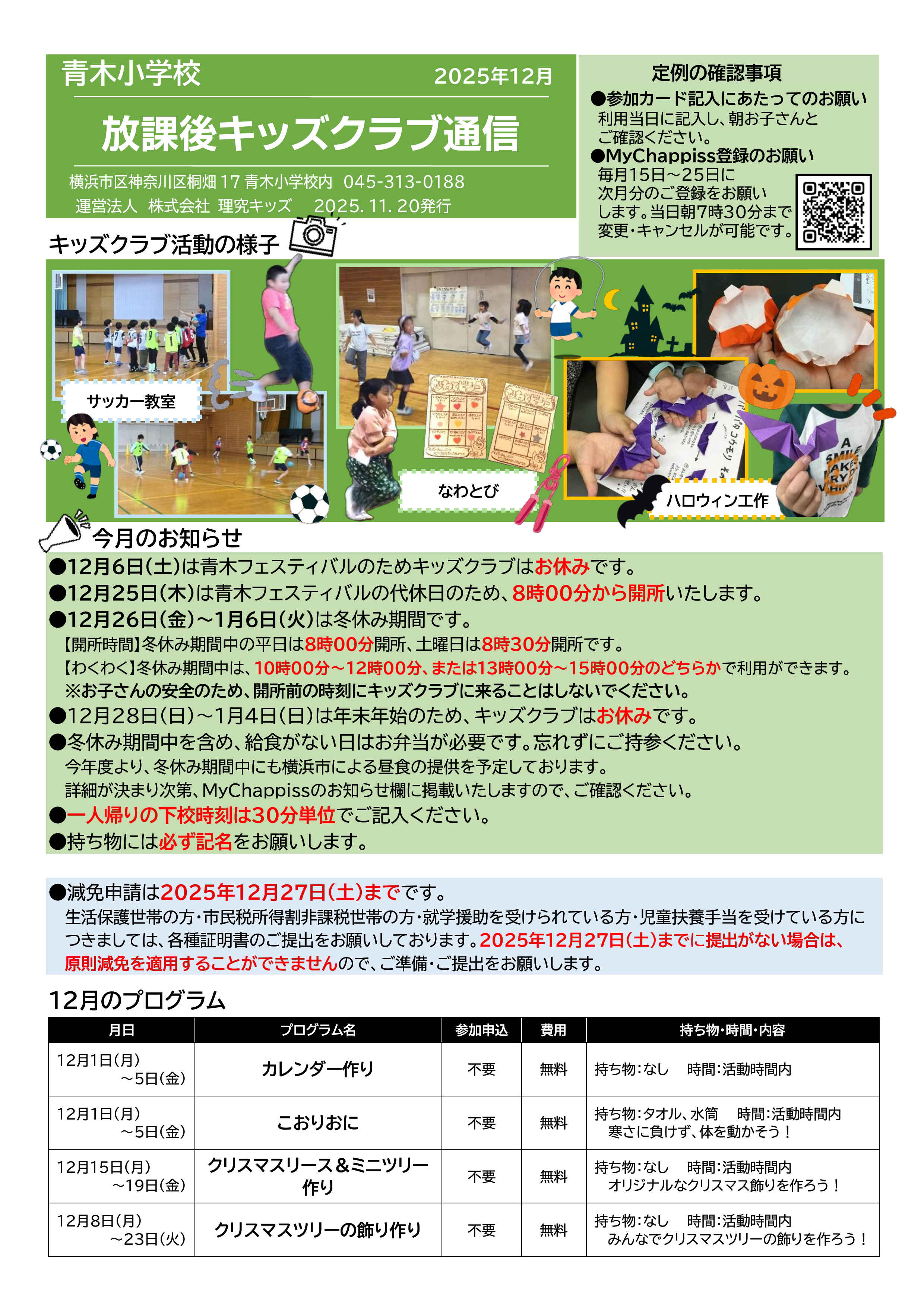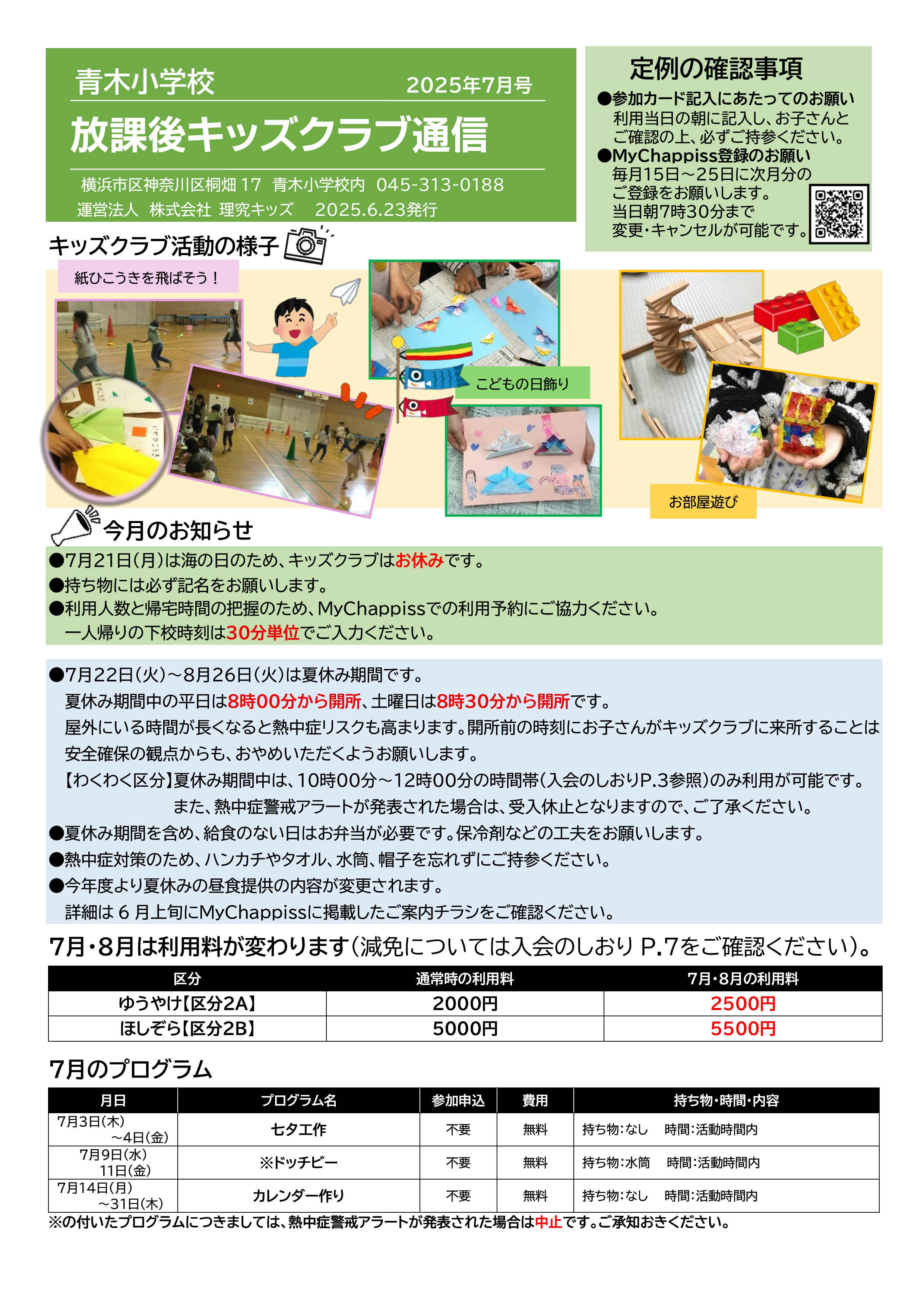 ※特別警報発表時は帰宅の安全が確保されるまで、お子さんは利用区分にかかわらず、放課後キッズクラブで留め置きとなります。