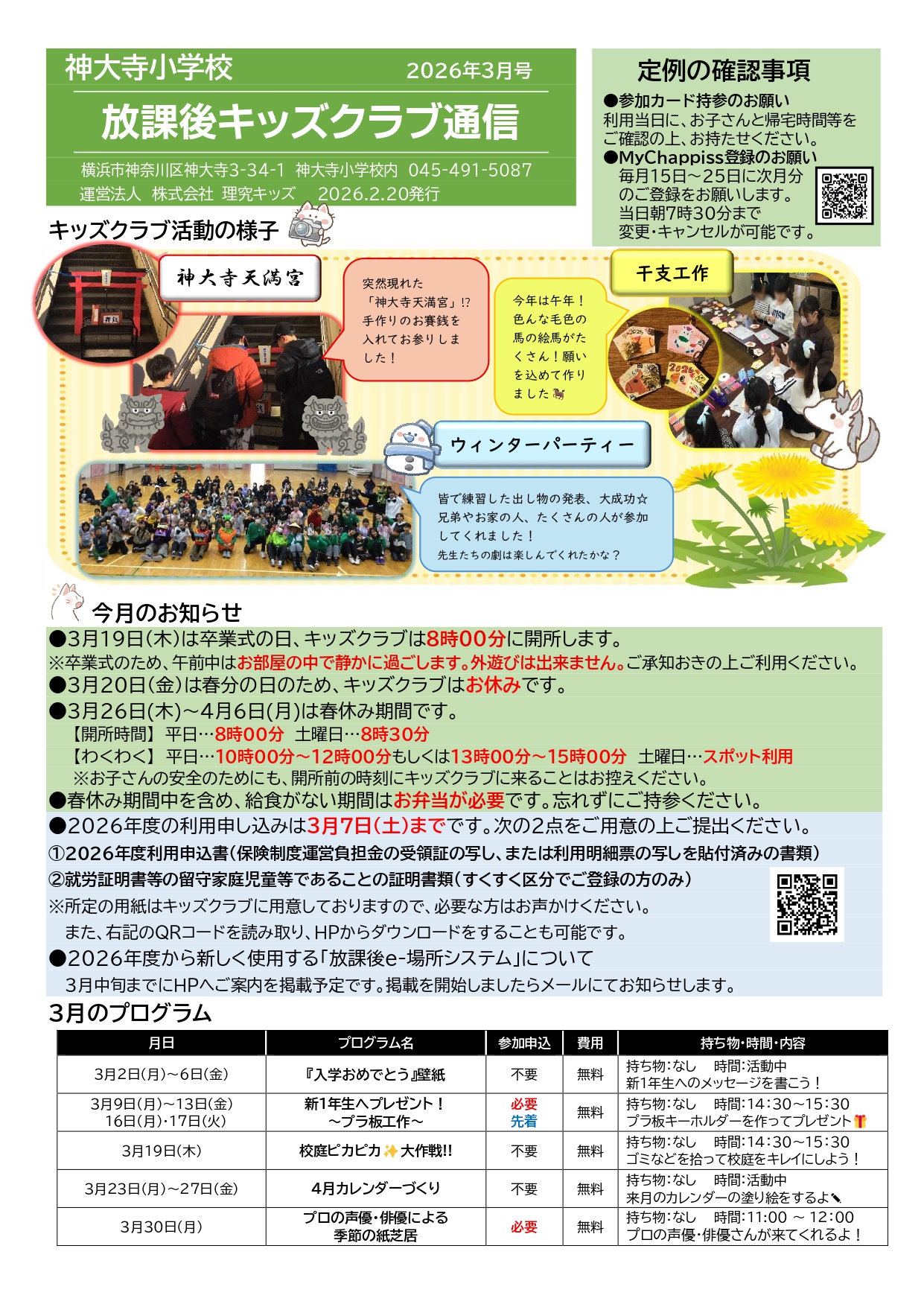 - キッズクラブ運営方針(PDFダウンロード) ※2026年度「運営方針」更新