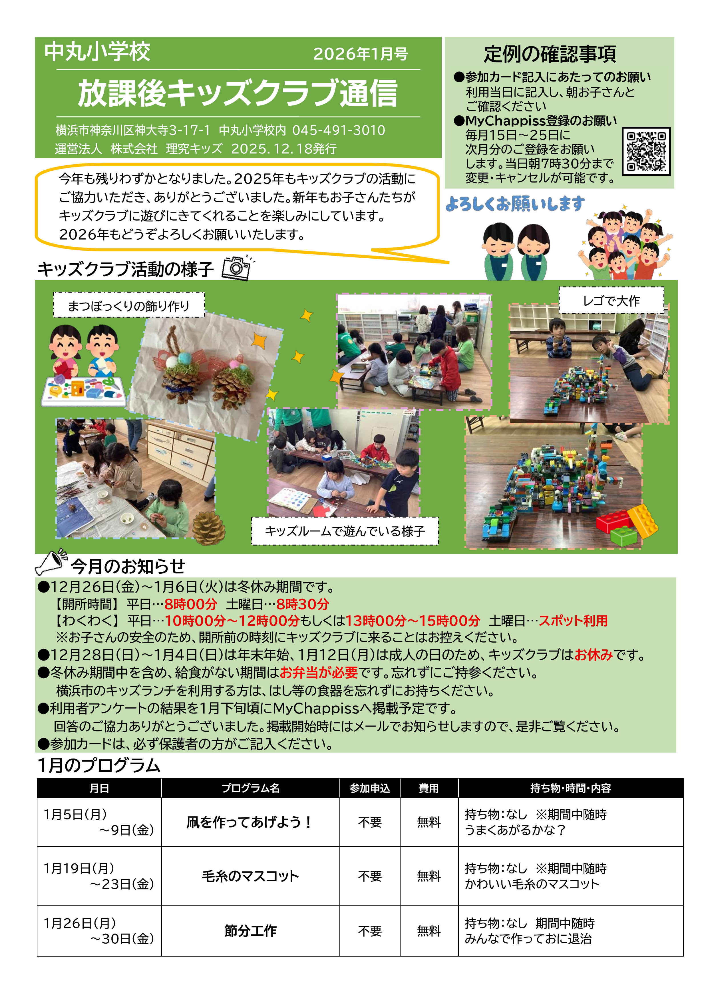 今月の放課後キッズクラブ通信