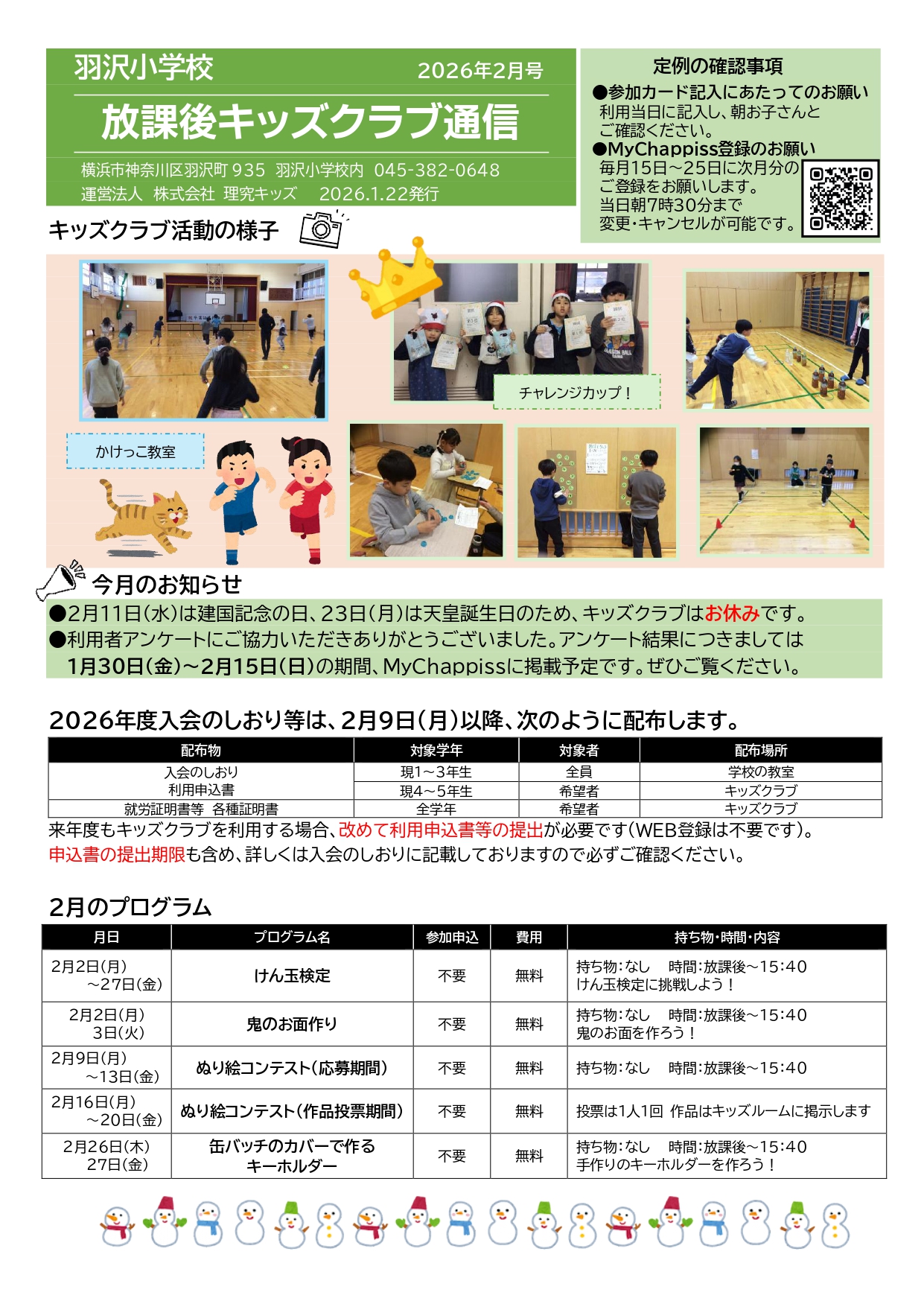 警報発表時等で通常と開所時間が異なる場合は、スタッフが放課後キッズクラブに到着してから利用可能になります。受け入れ可能になり次第、メールにてお知らせします。