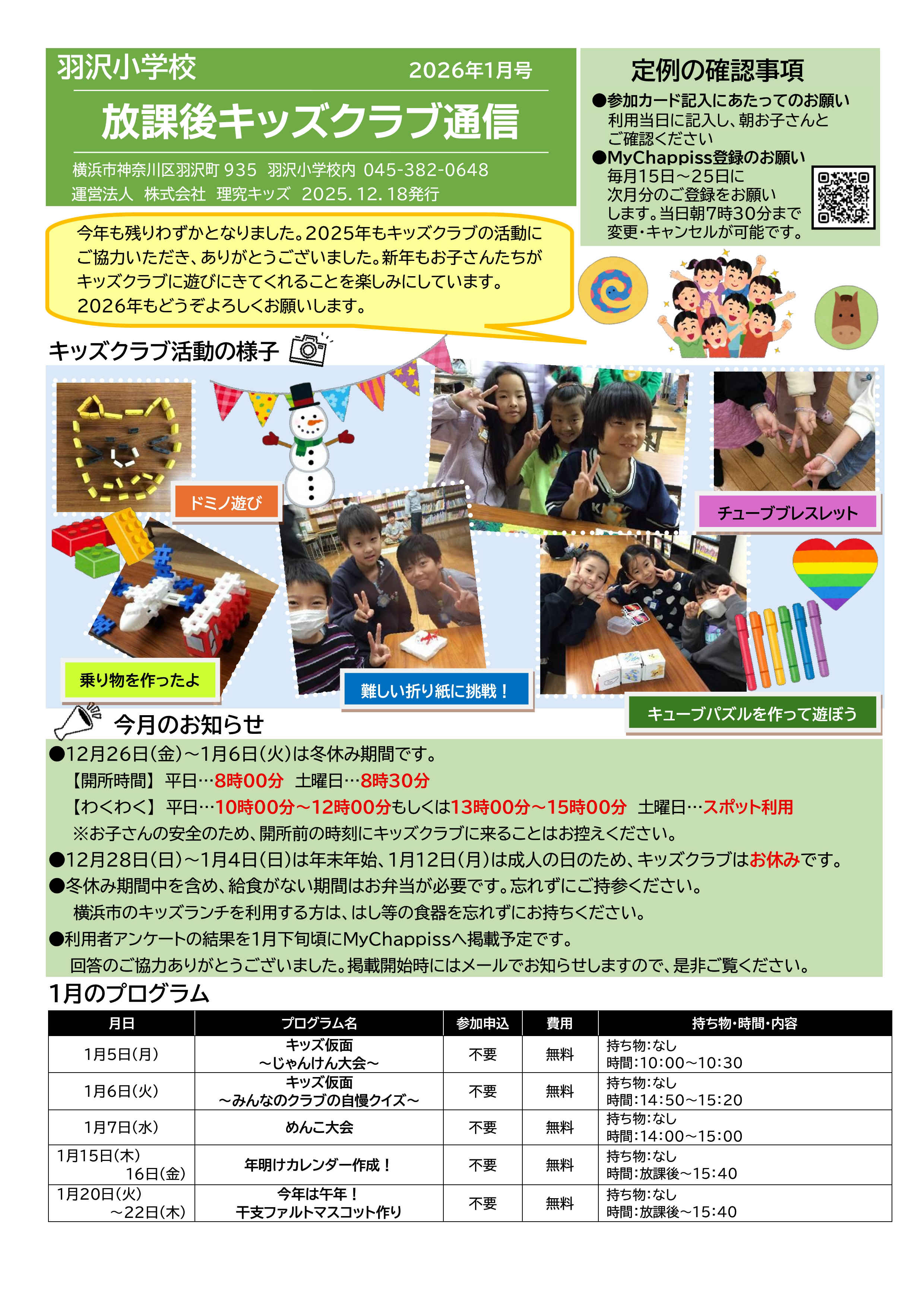 警報発表時等で通常と開所時間が異なる場合は、スタッフが放課後キッズクラブに到着してから利用可能になります。受け入れ可能になり次第、メールにてお知らせします。