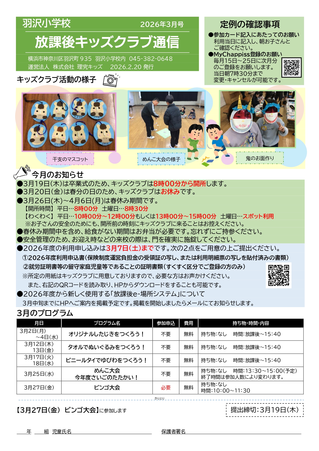 - キッズクラブ運営方針(PDFダウンロード) ※2026年度「運営方針」更新