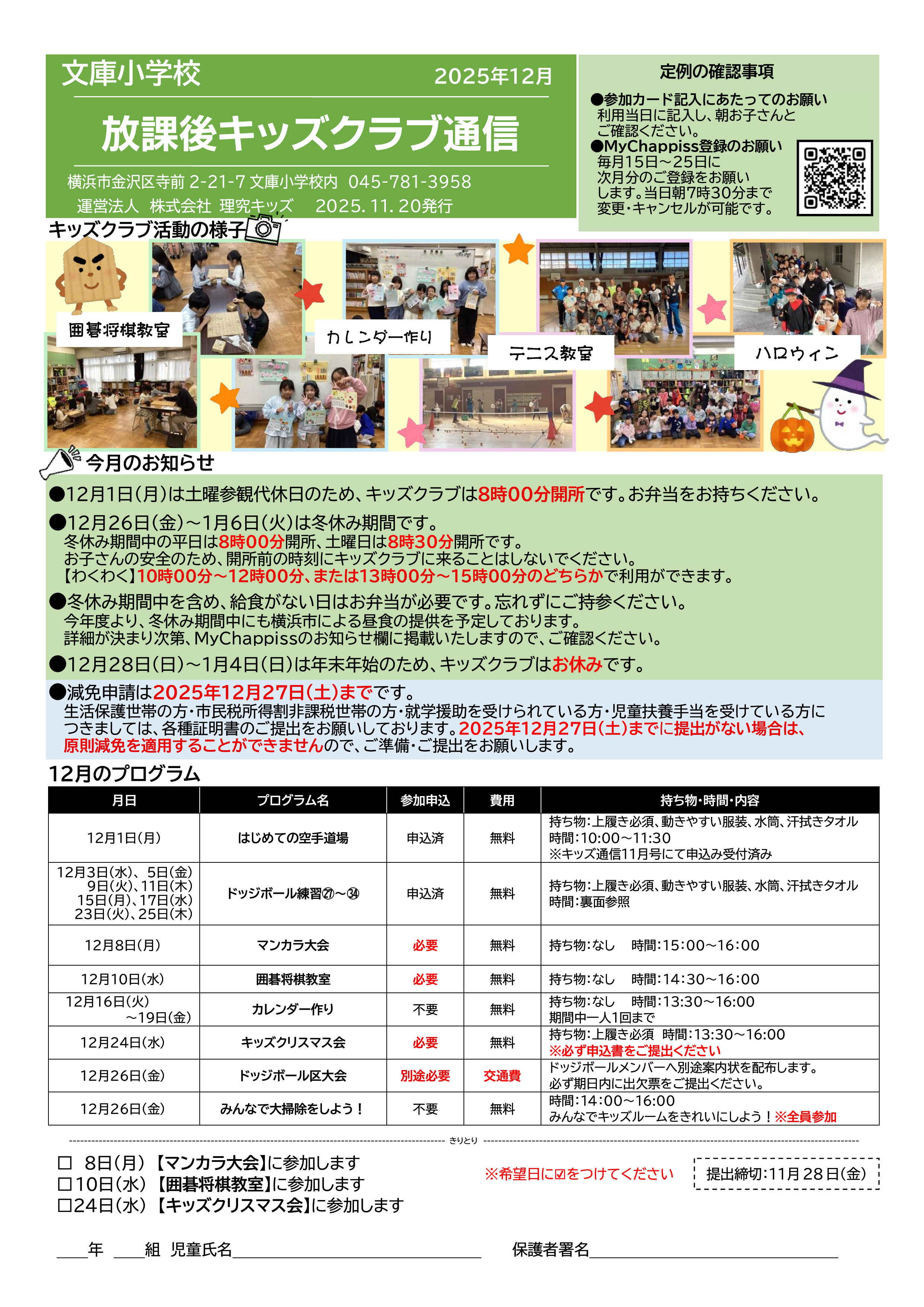 今月の放課後キッズクラブ通信