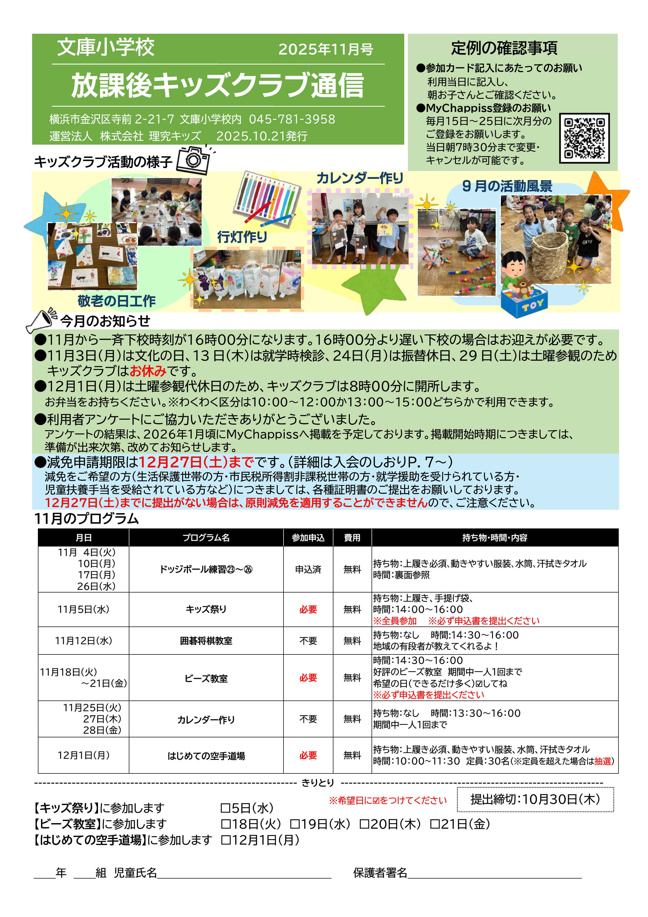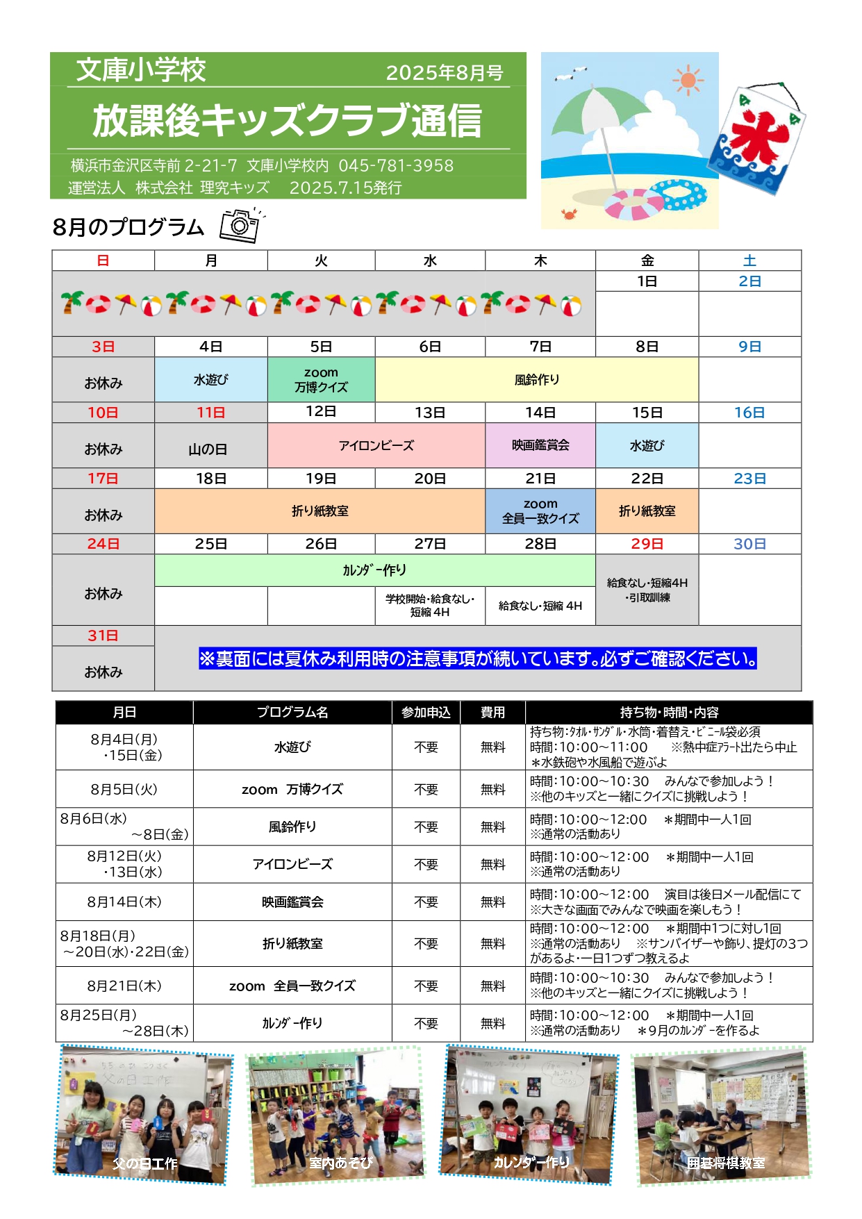 今月の放課後キッズクラブ通信