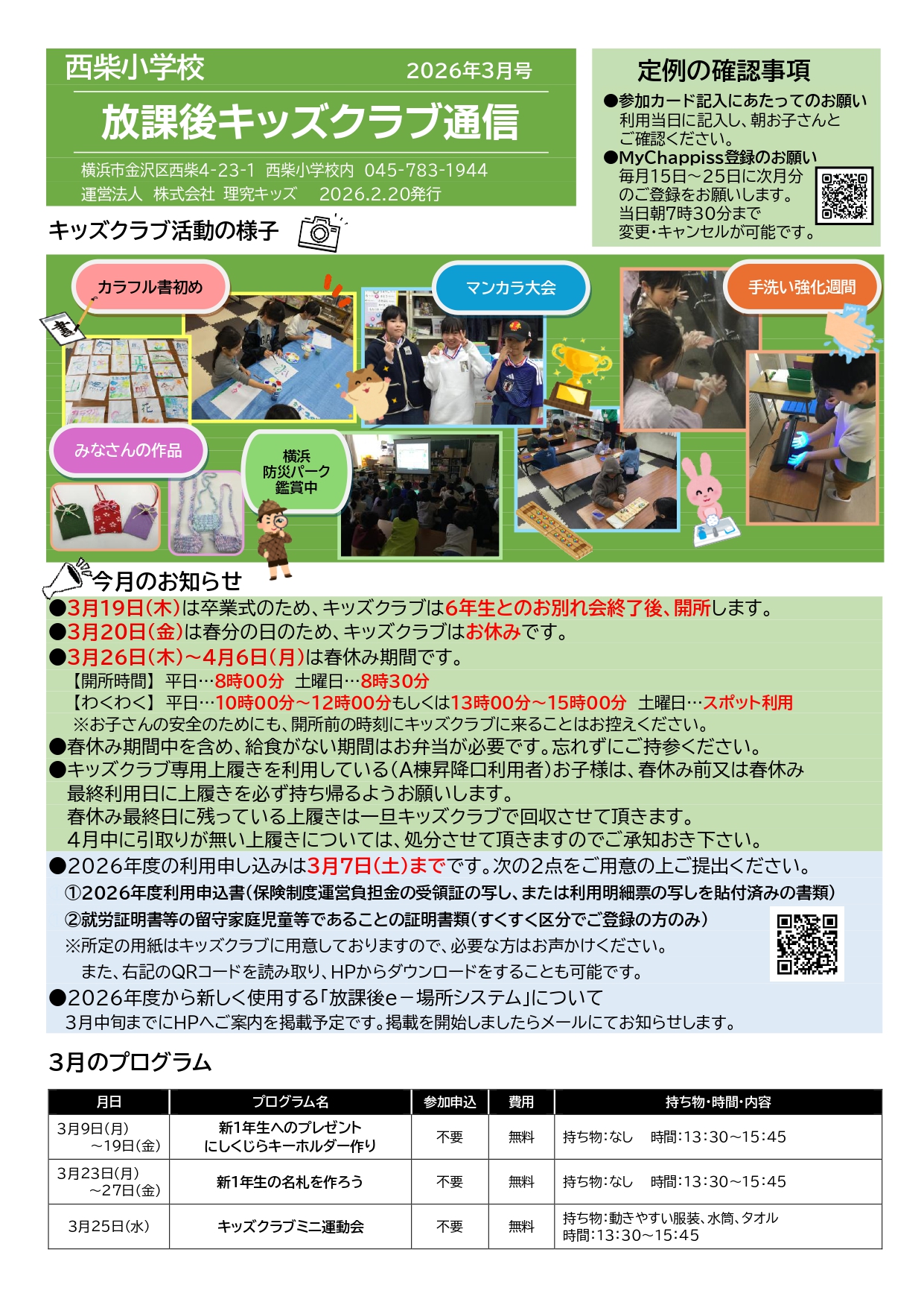 - キッズクラブ運営方針(PDFダウンロード) ※2026年度「運営方針」更新