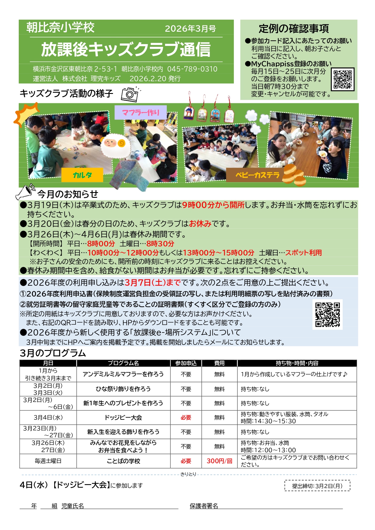 今月の放課後キッズクラブ通信