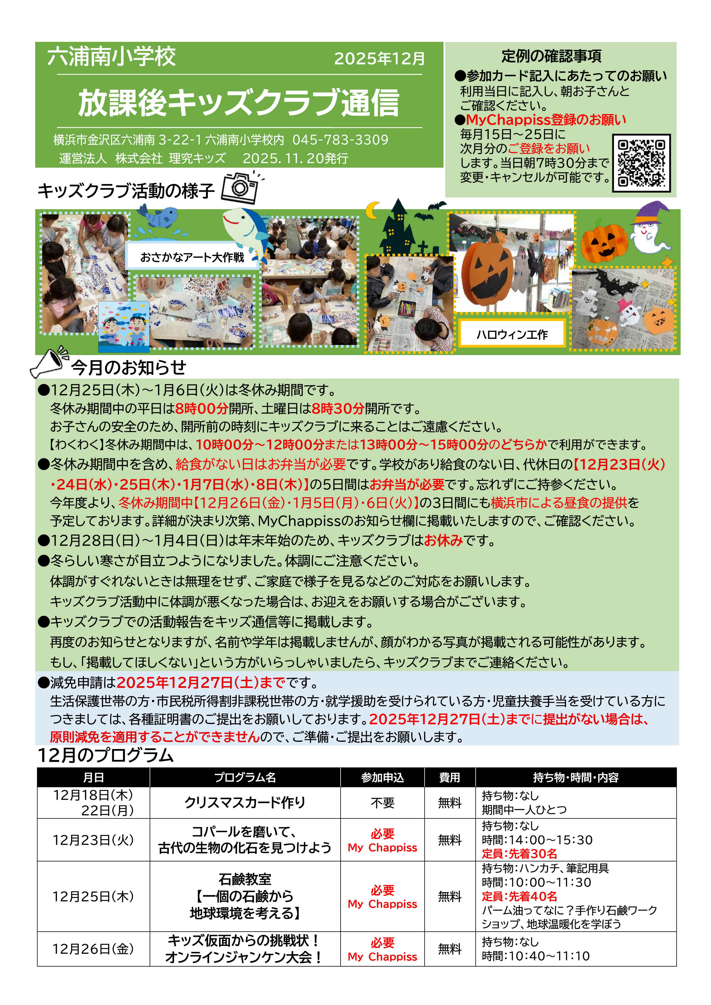 今月の放課後キッズクラブ通信