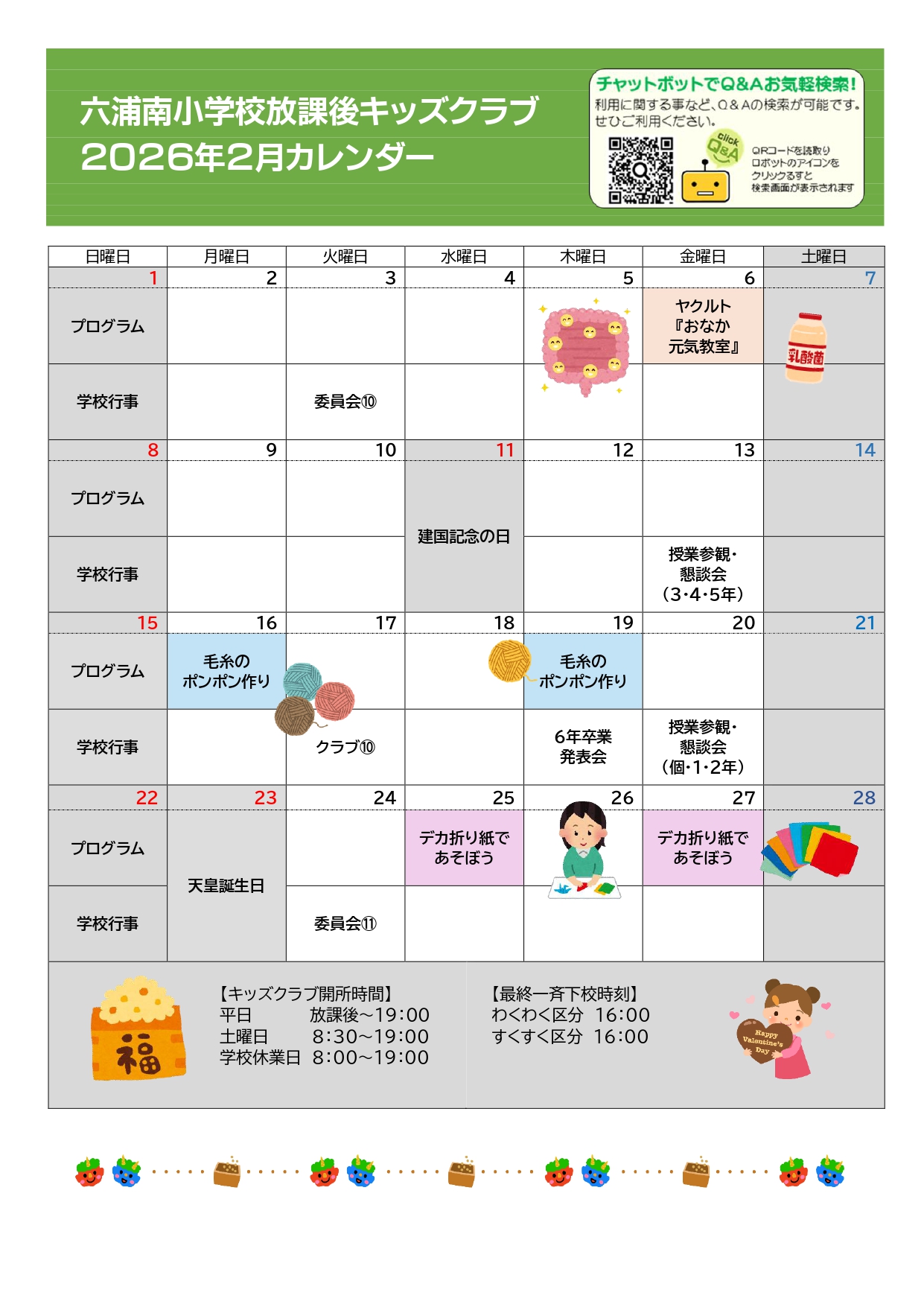 「暴風警報」・「大雪警報」・「暴風雪警報」・「降灰予報」発表中は、帰宅時刻に関わらず、利用しているすべてのお子さんの保護者か代理の方のお迎えが必要です。子どもたちはお迎えが来るまで放課後キッズクラブで待機します。