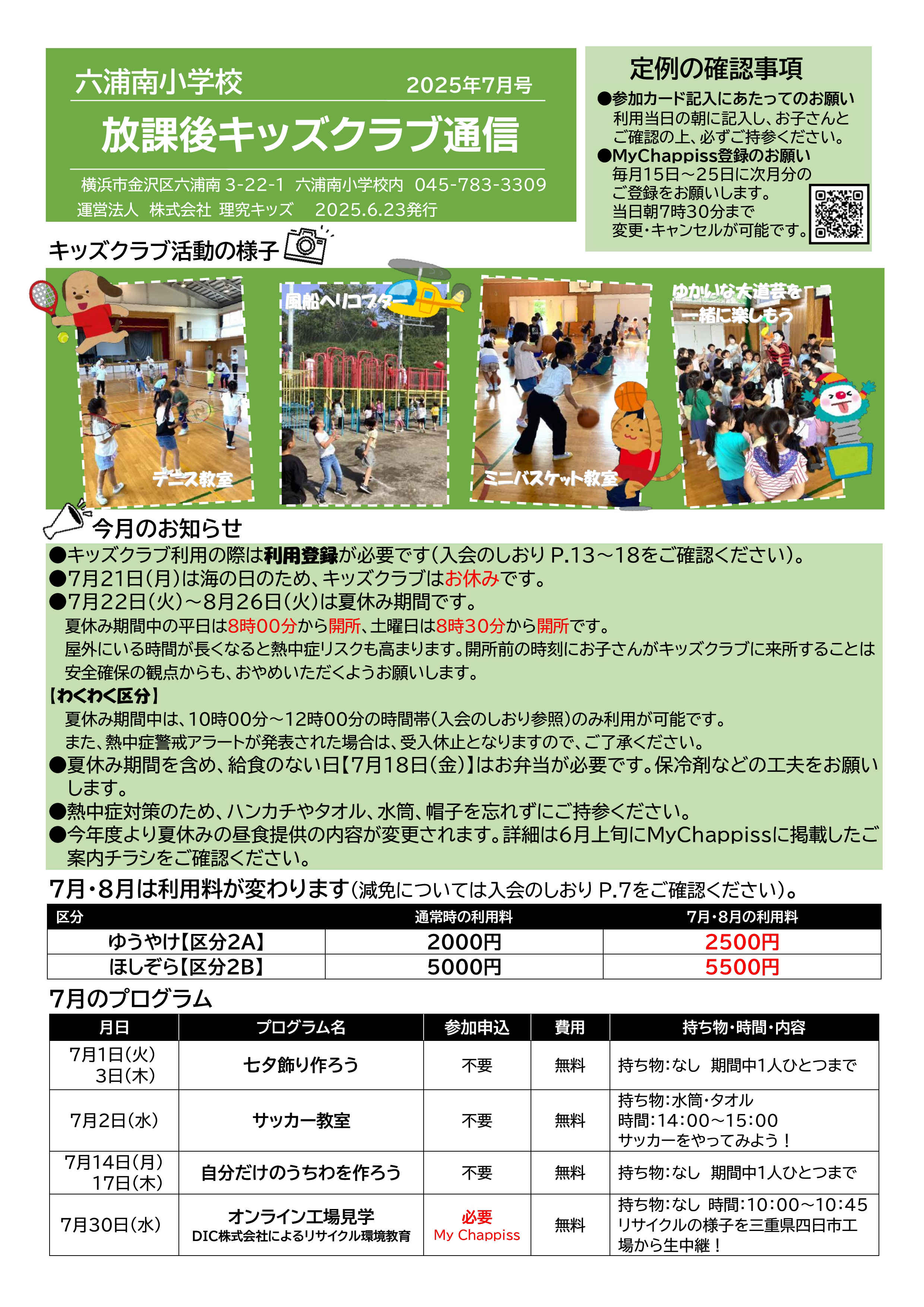 今月の放課後キッズクラブ通信