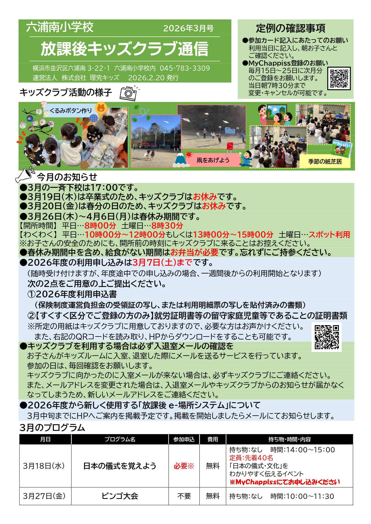 - キッズクラブ運営方針(PDFダウンロード) ※2026年度「運営方針」更新
