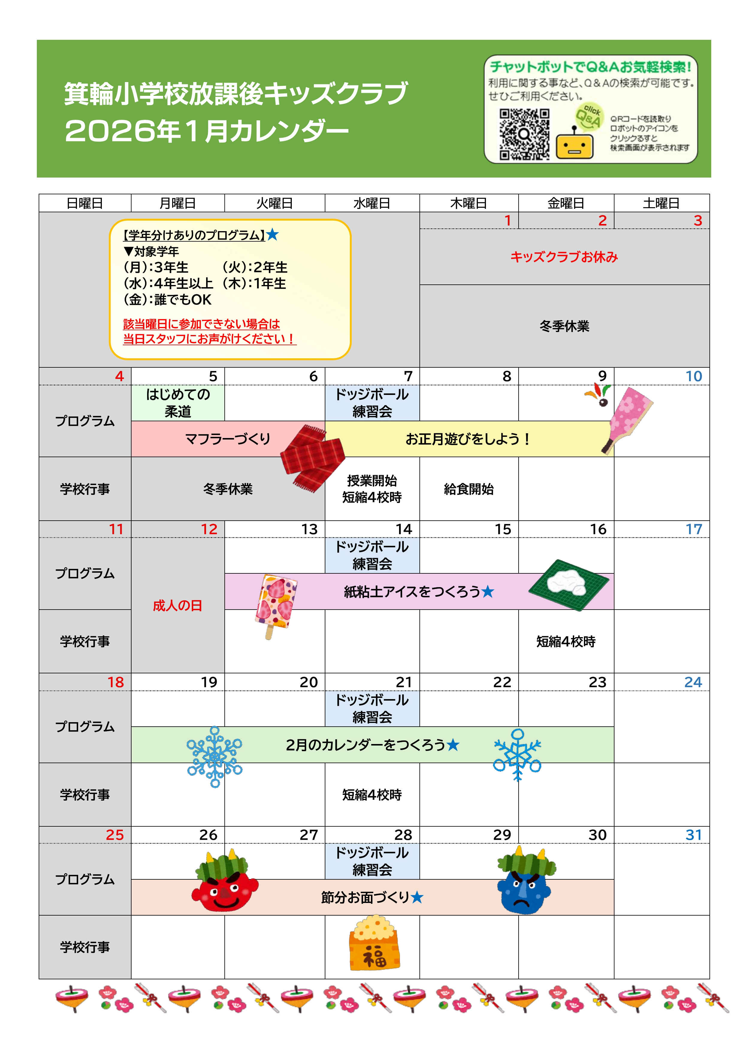 箕輪小学校放課後キッズクラブについてのよくあるご質問をまとめました。キッズクラブのことでご不明なことがございましたらこちらも参照ください。