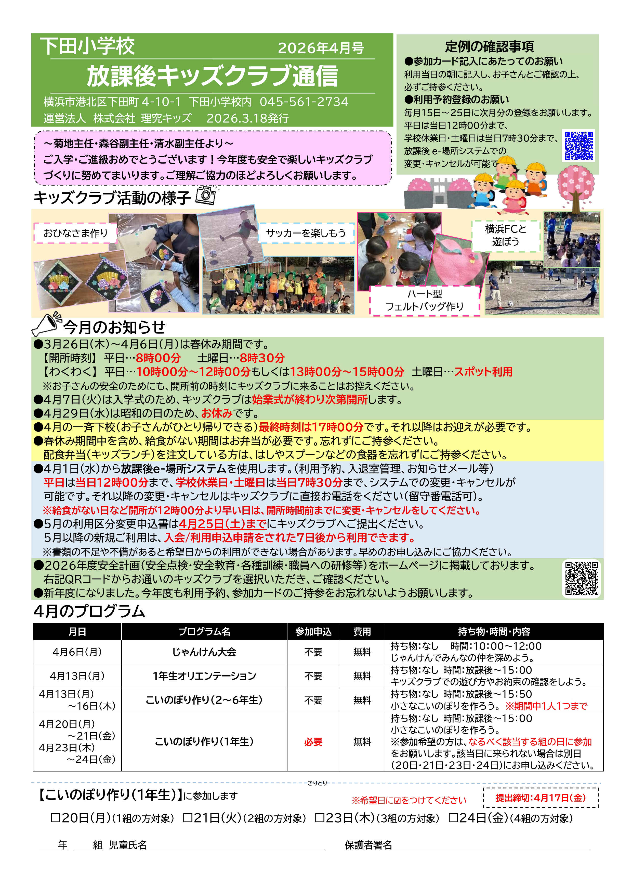 • 参加カード(利用日に「帰宅時間」「お迎えの有無」「保護者印(署名も可)」の記入あり)
