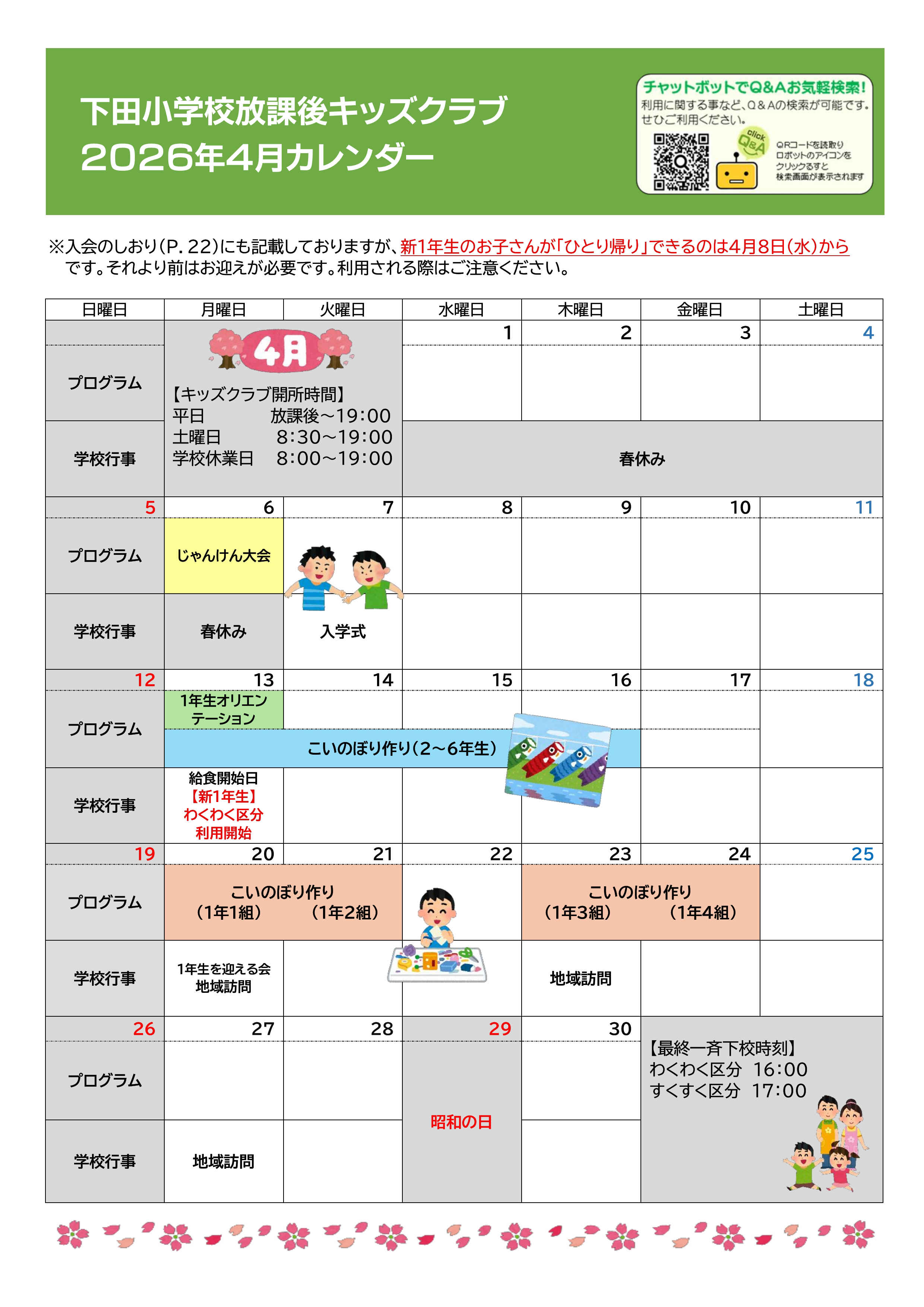 警報発表時等で通常と開所時間が異なる場合は、スタッフが放課後キッズクラブに到着してから利用可能になります。受け入れ可能になり次第、メールにてお知らせします。