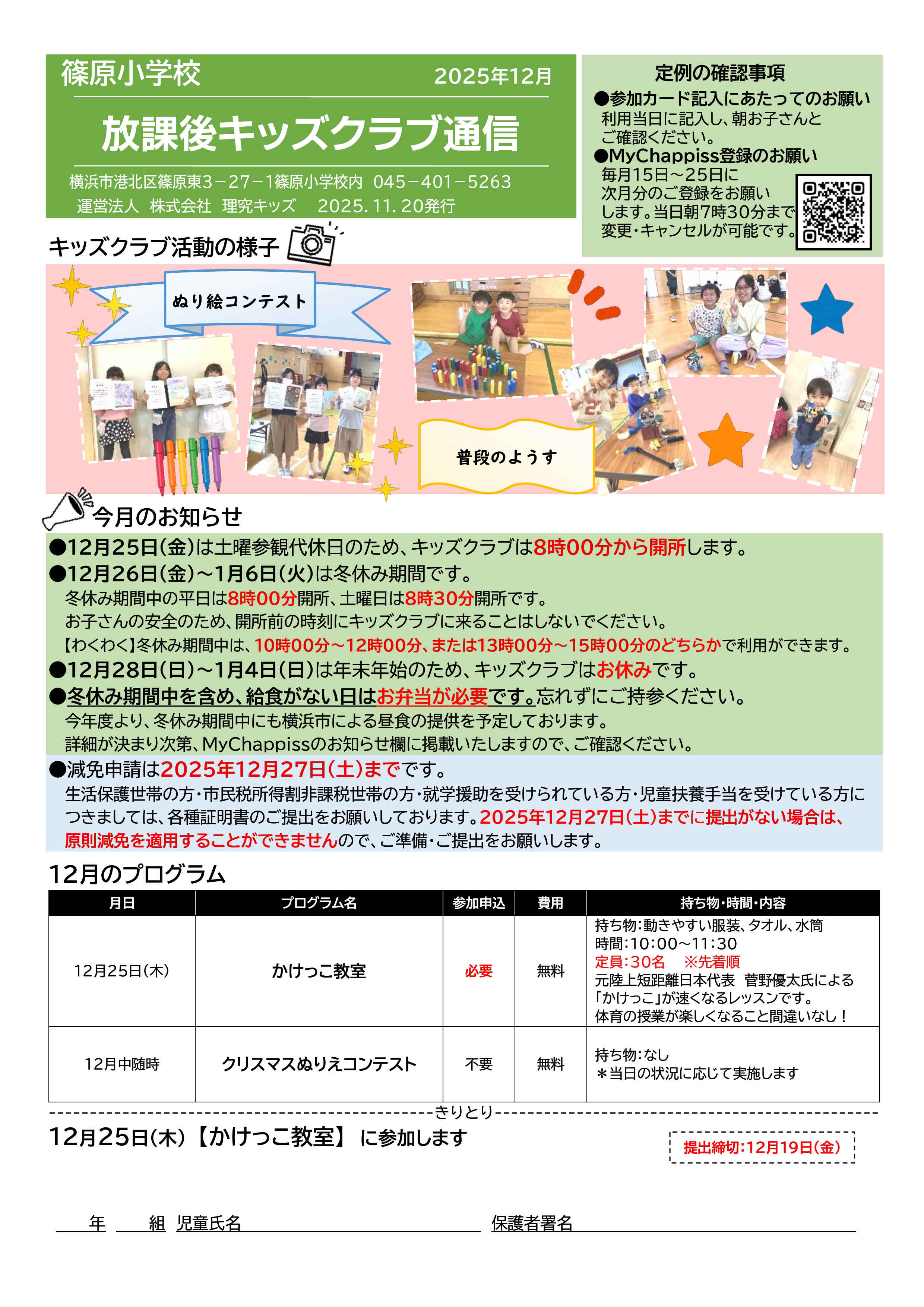 ※特別警報発表時は帰宅の安全が確保されるまで、お子さんは利用区分にかかわらず、放課後キッズクラブで留め置きとなります。