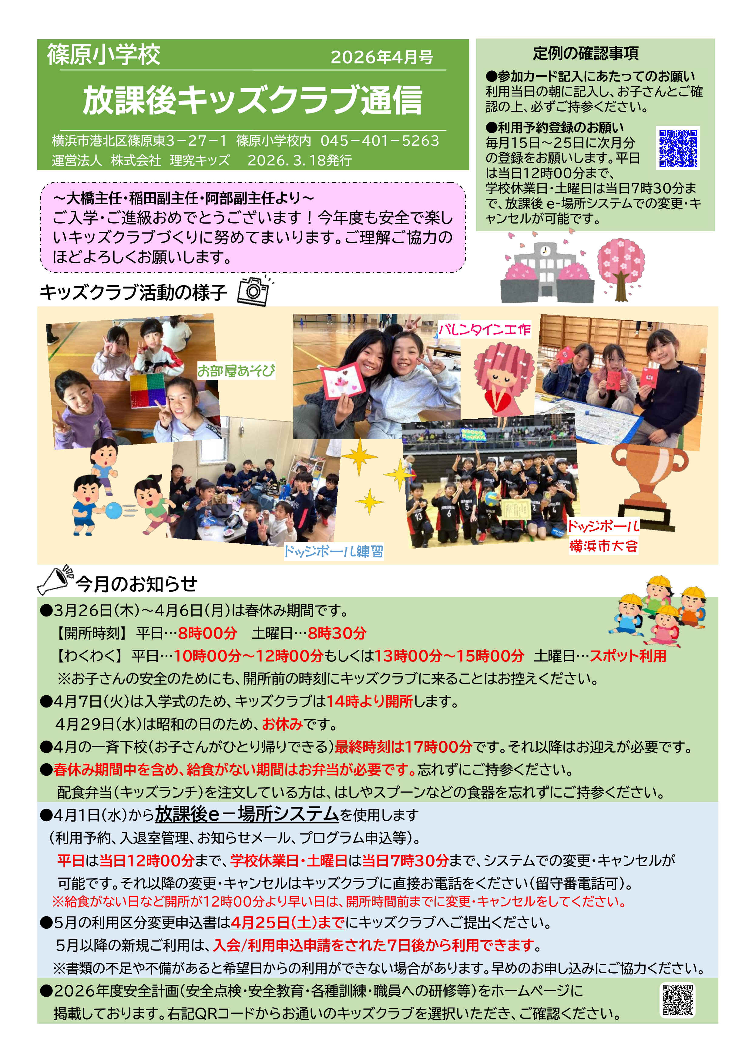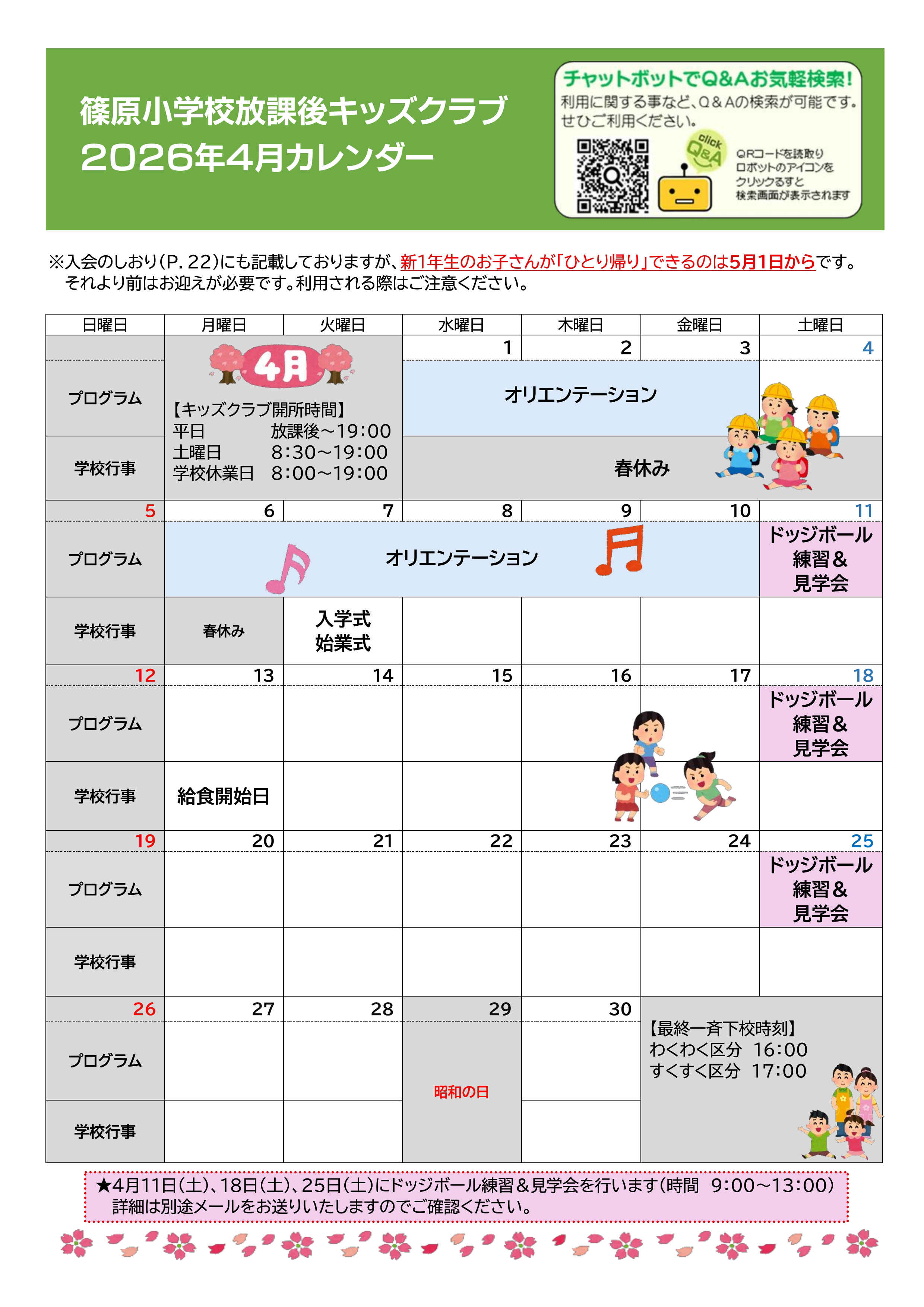 警報発表時等で通常と開所時間が異なる場合は、スタッフが放課後キッズクラブに到着してから利用可能になります。