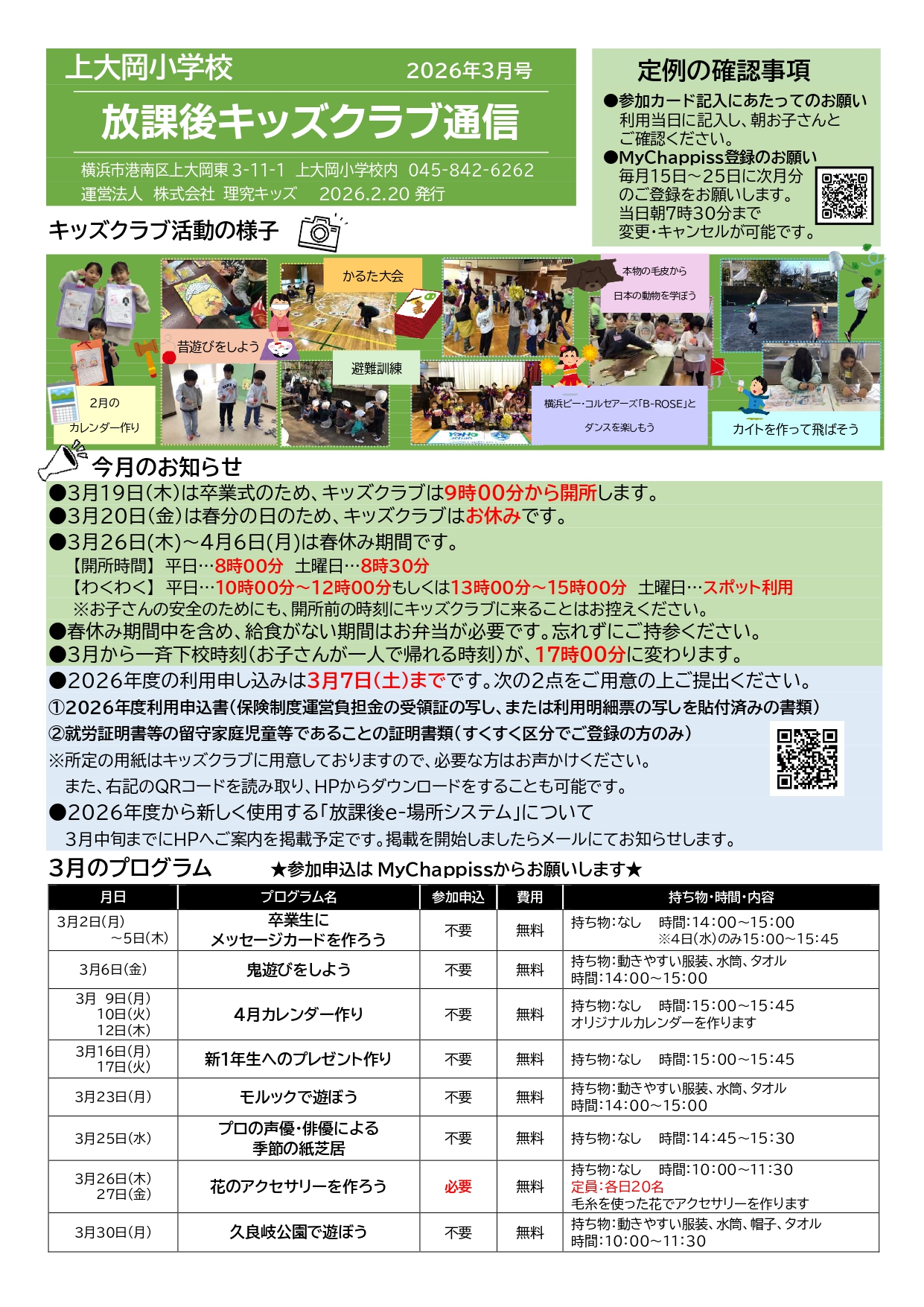 - キッズクラブ運営方針(PDFダウンロード) ※2026年度「運営方針」更新