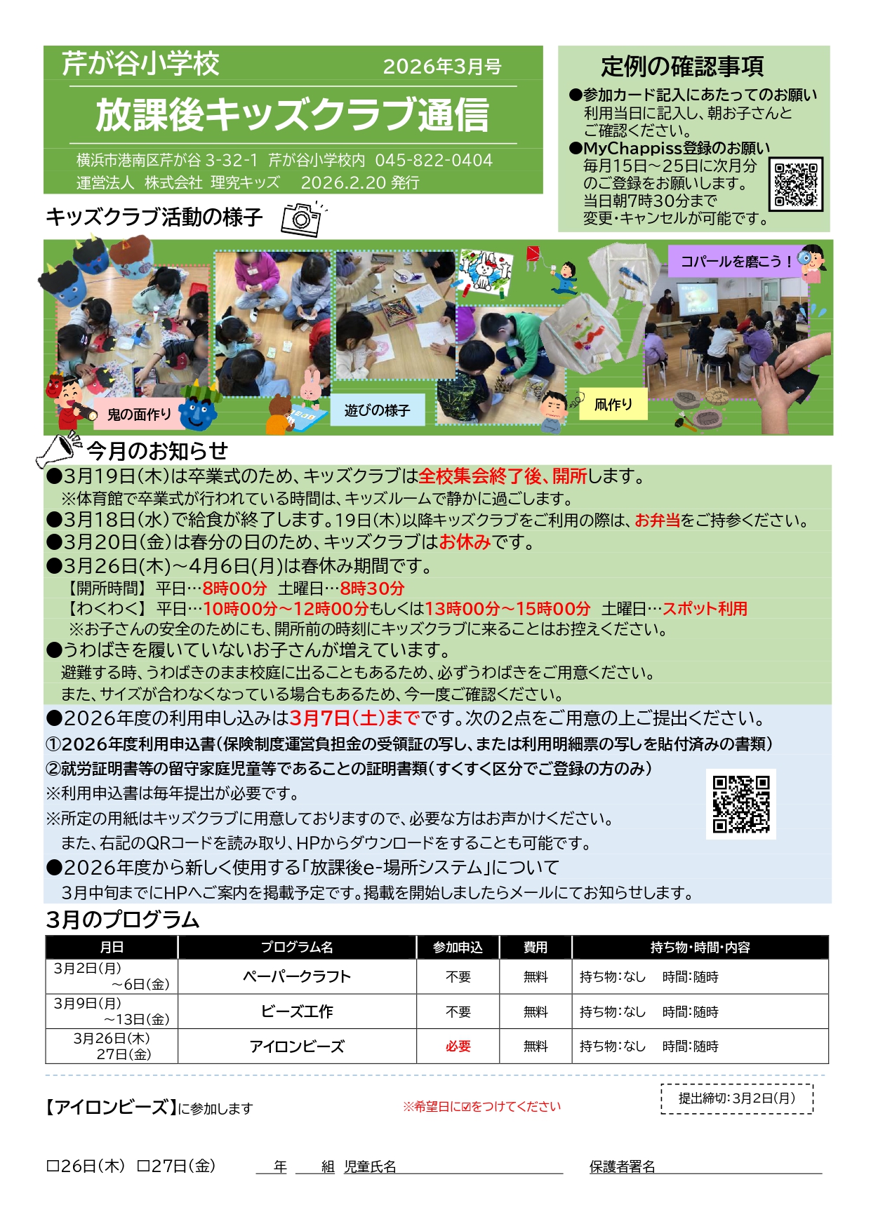 - キッズクラブ運営方針(PDFダウンロード) ※2026年度「運営方針」更新