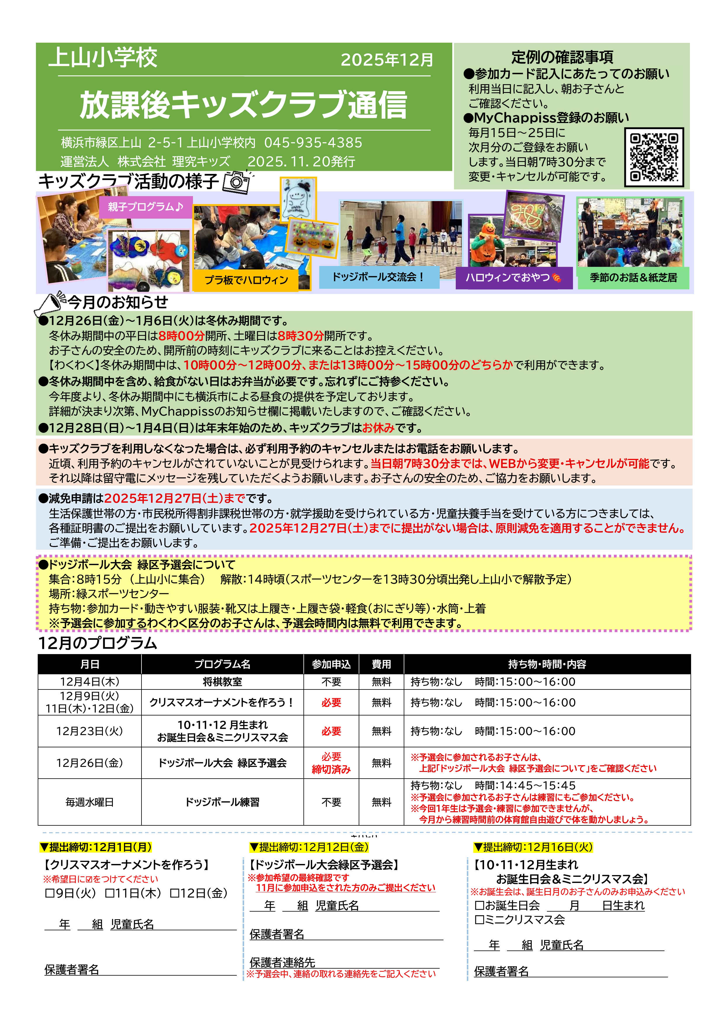 - 参加カード(利用日に「帰宅時間」「お迎えの有無」「保護者印(署名も可)」の記入あり)