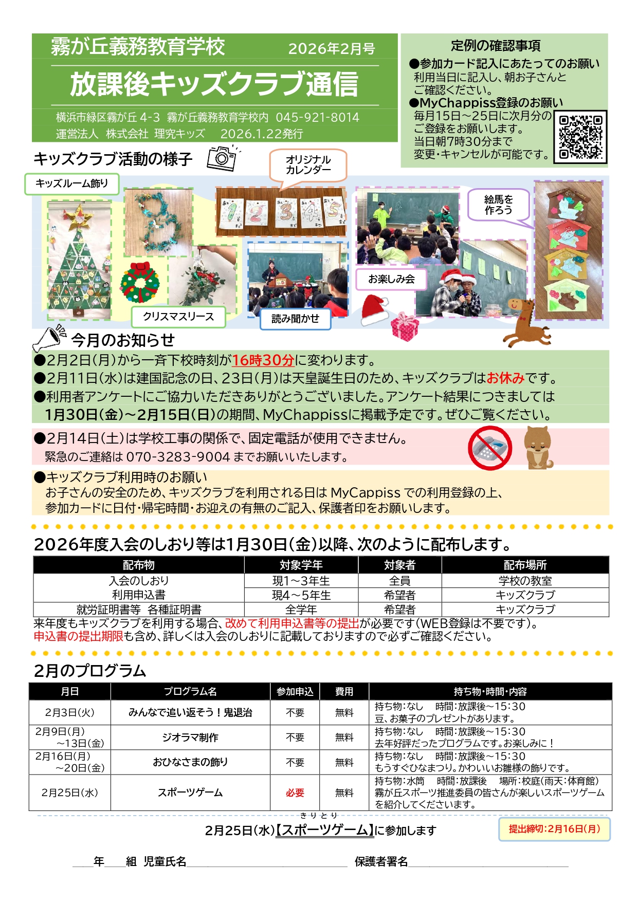 • 参加カード(利用日に「帰宅時間」「お迎えの有無」「保護者印(署名も可)」の記入あり)