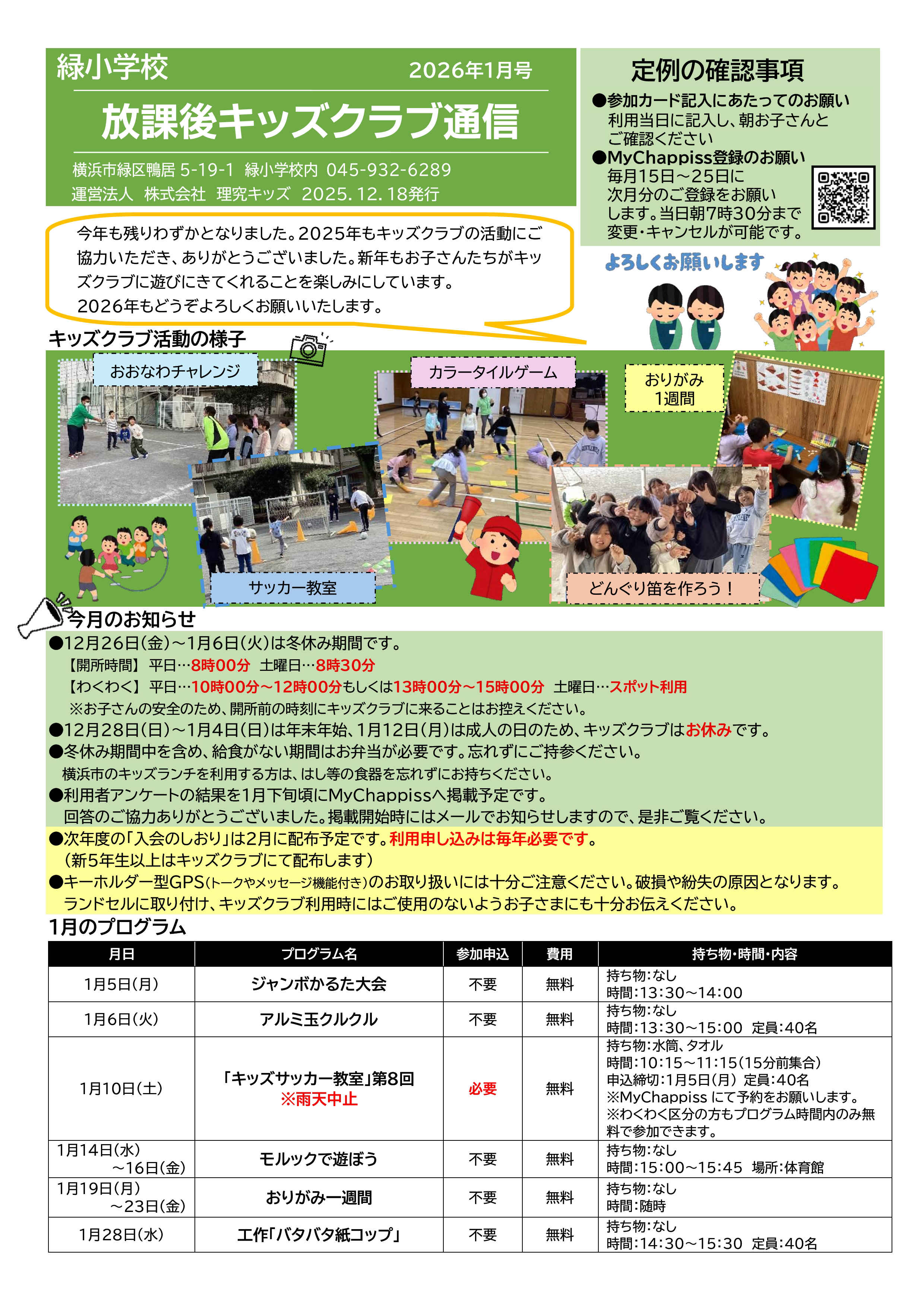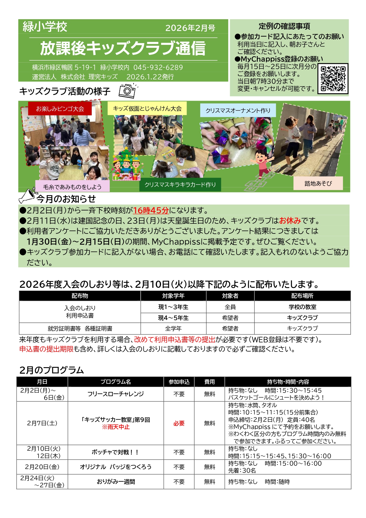 今月の放課後キッズクラブ通信