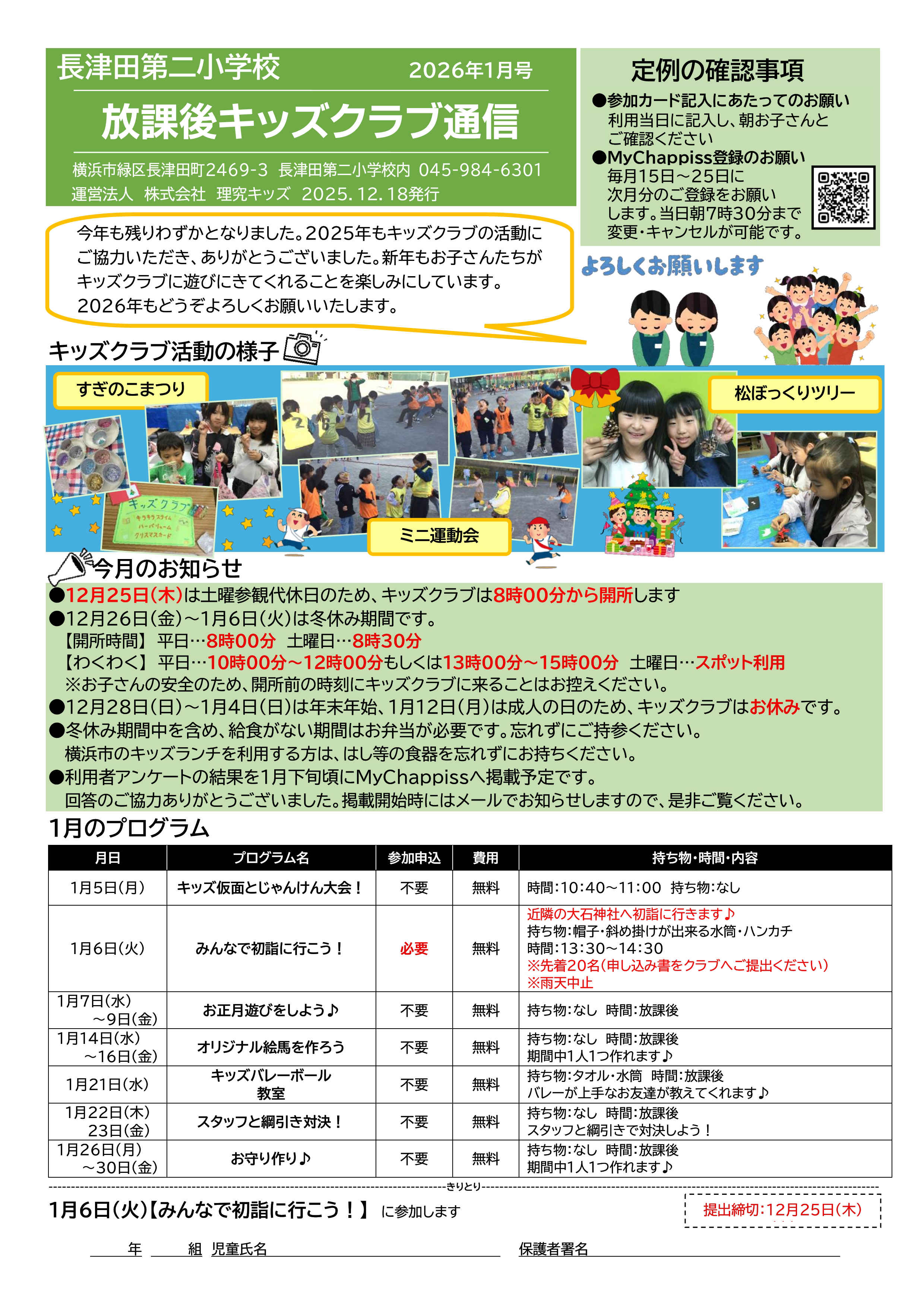 今月の放課後キッズクラブ通信