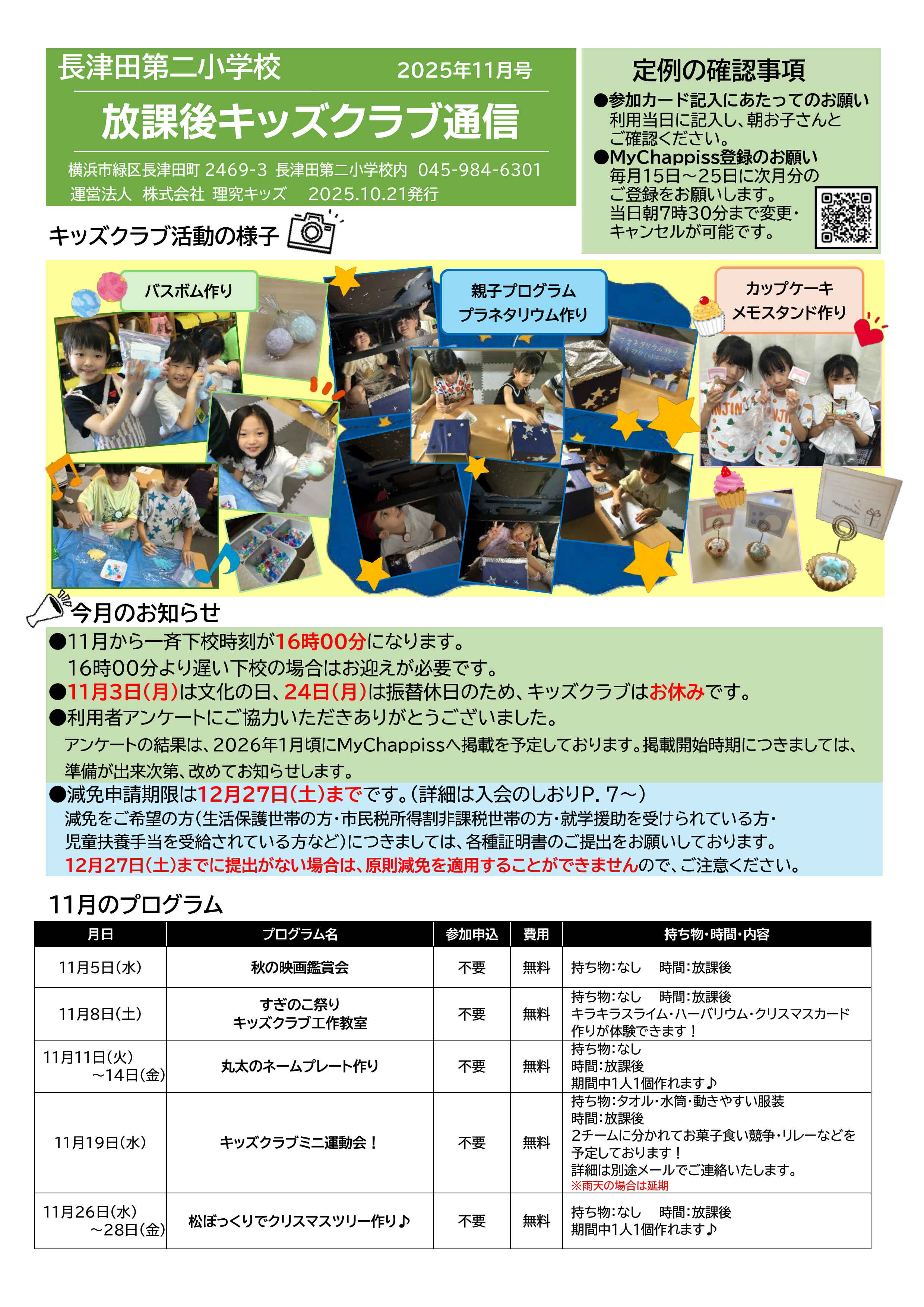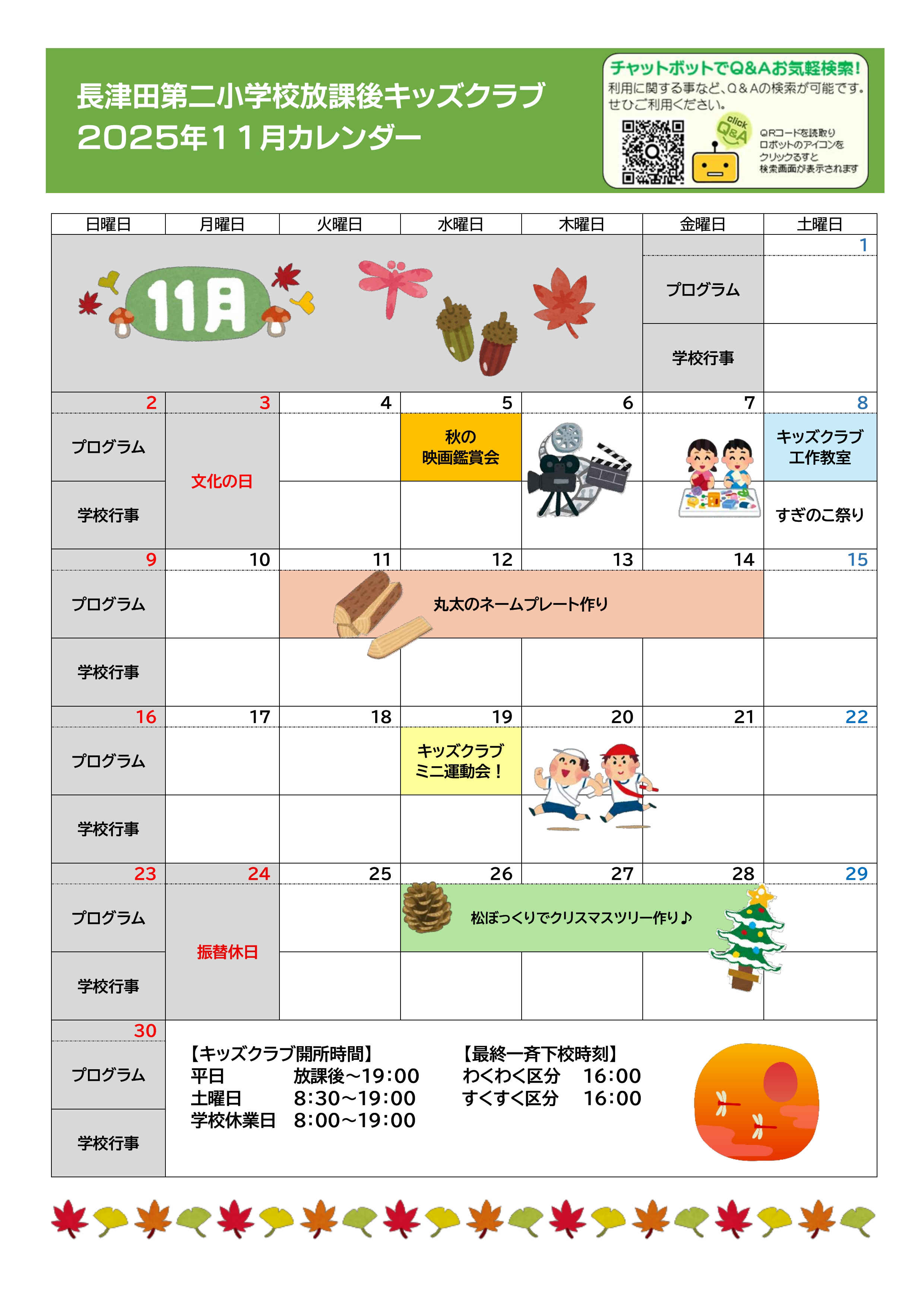 警報発表時等で通常と開所時間が異なる場合は、スタッフが放課後キッズクラブに到着してから利用可能になります。受け入れ可能になり次第、メールにてお知らせします。