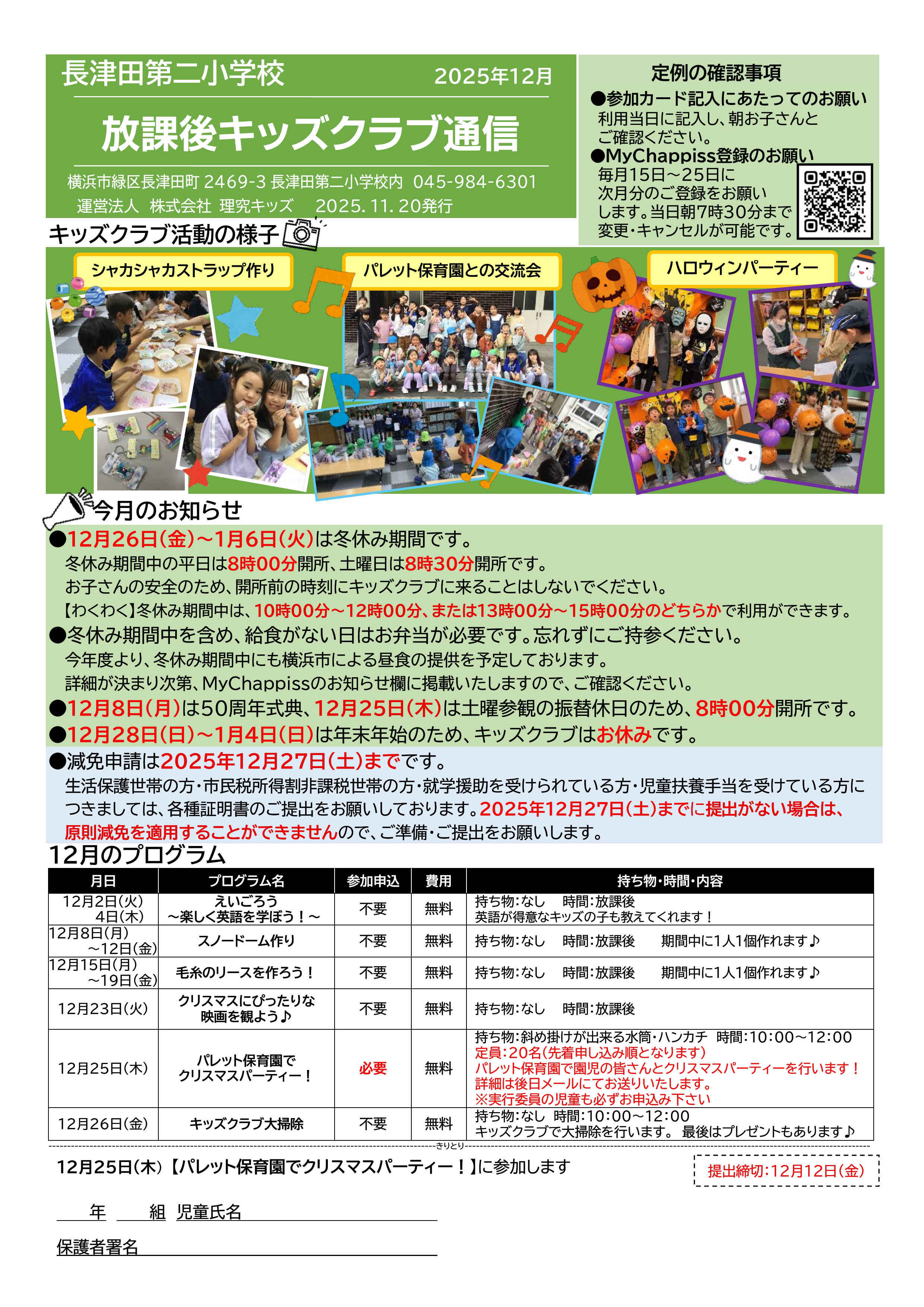 - 参加カード(利用日に「帰宅時間」「お迎えの有無」「保護者印」の記入・押印あり(署名も可)