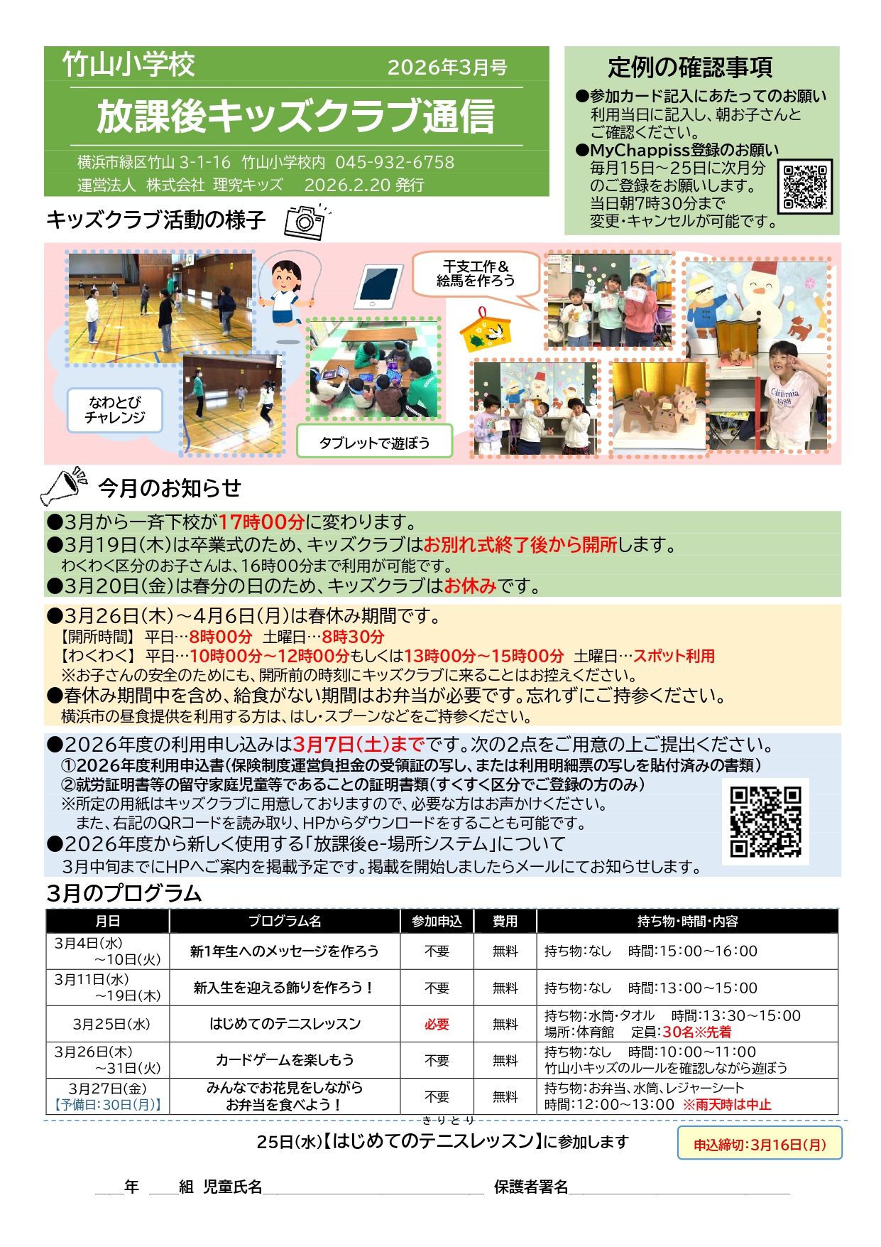 - キッズクラブ運営方針(PDFダウンロード) ※2026年度「運営方針」更新