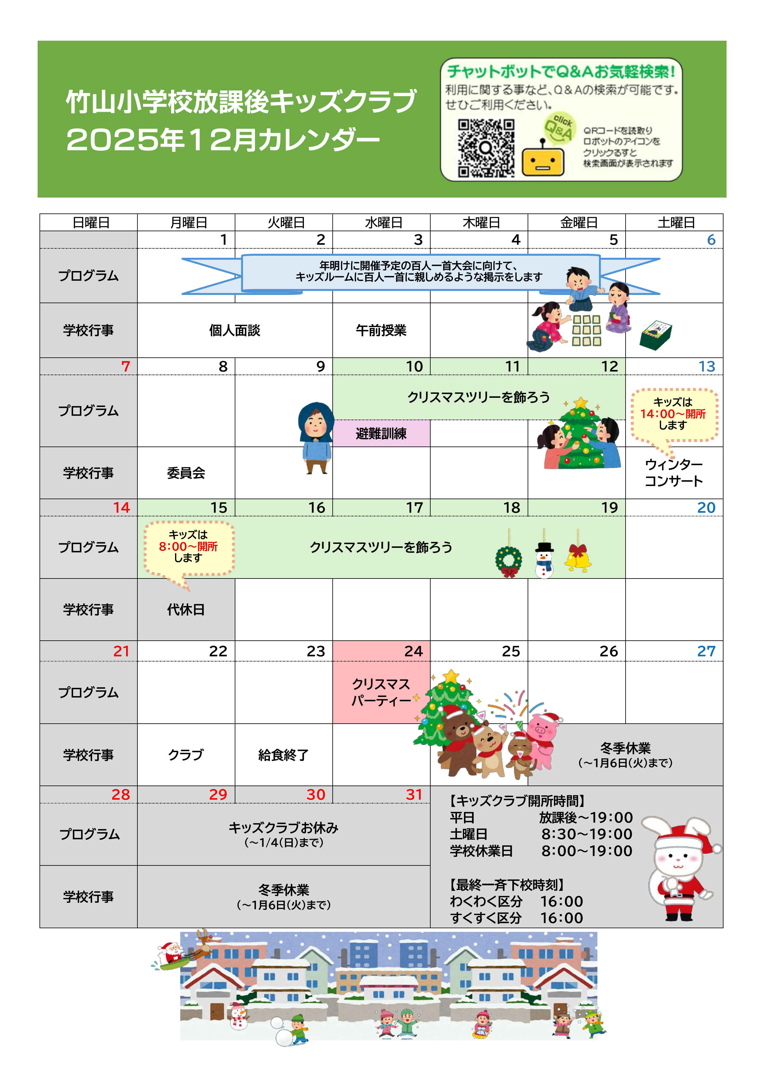 午前6時の段階で、横浜市内に「暴風警報」「大雪警報」「暴風雪警報」「降灰予報」が発表された場合、放課後キッズクラブは、開所せず閉所とします。