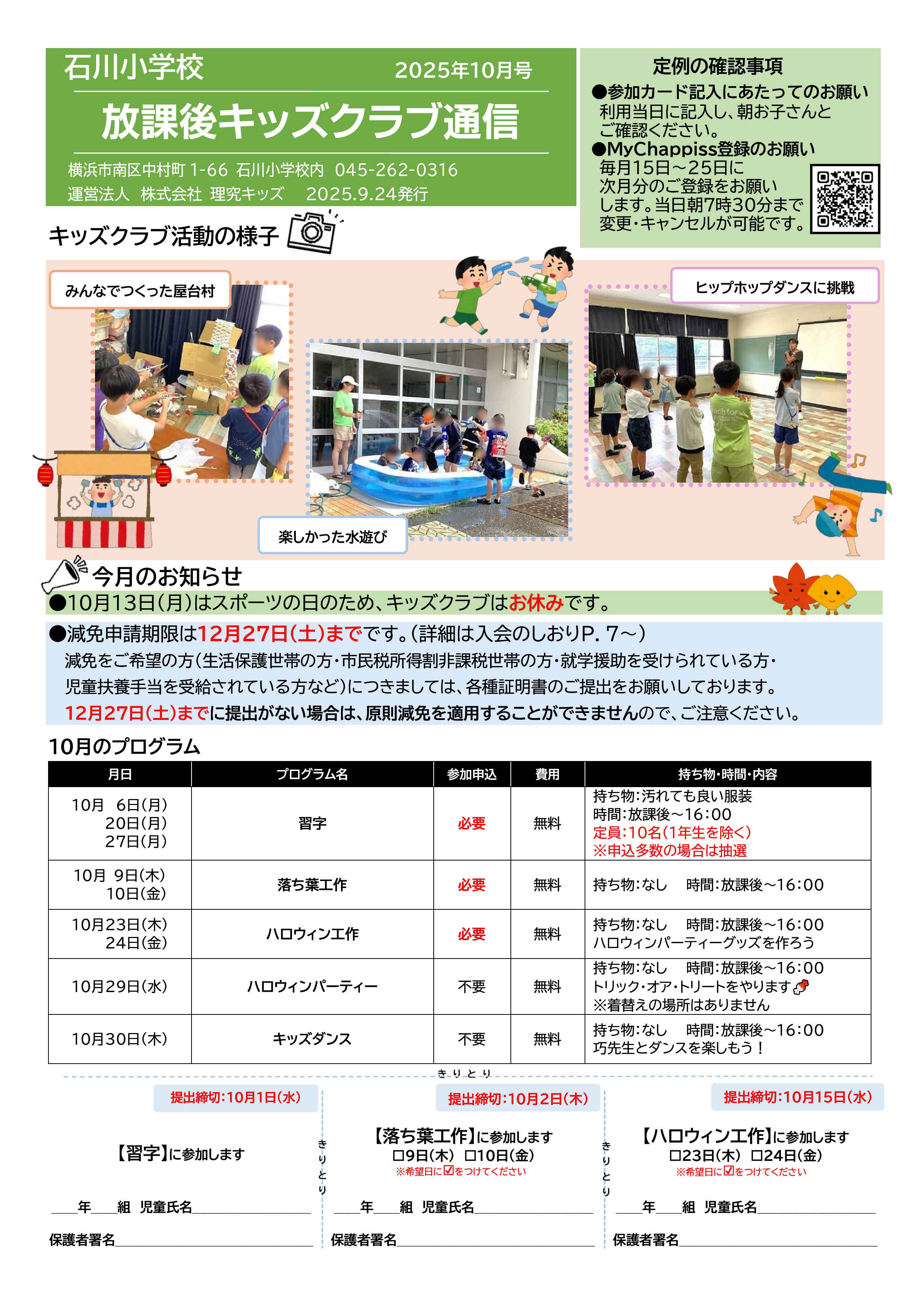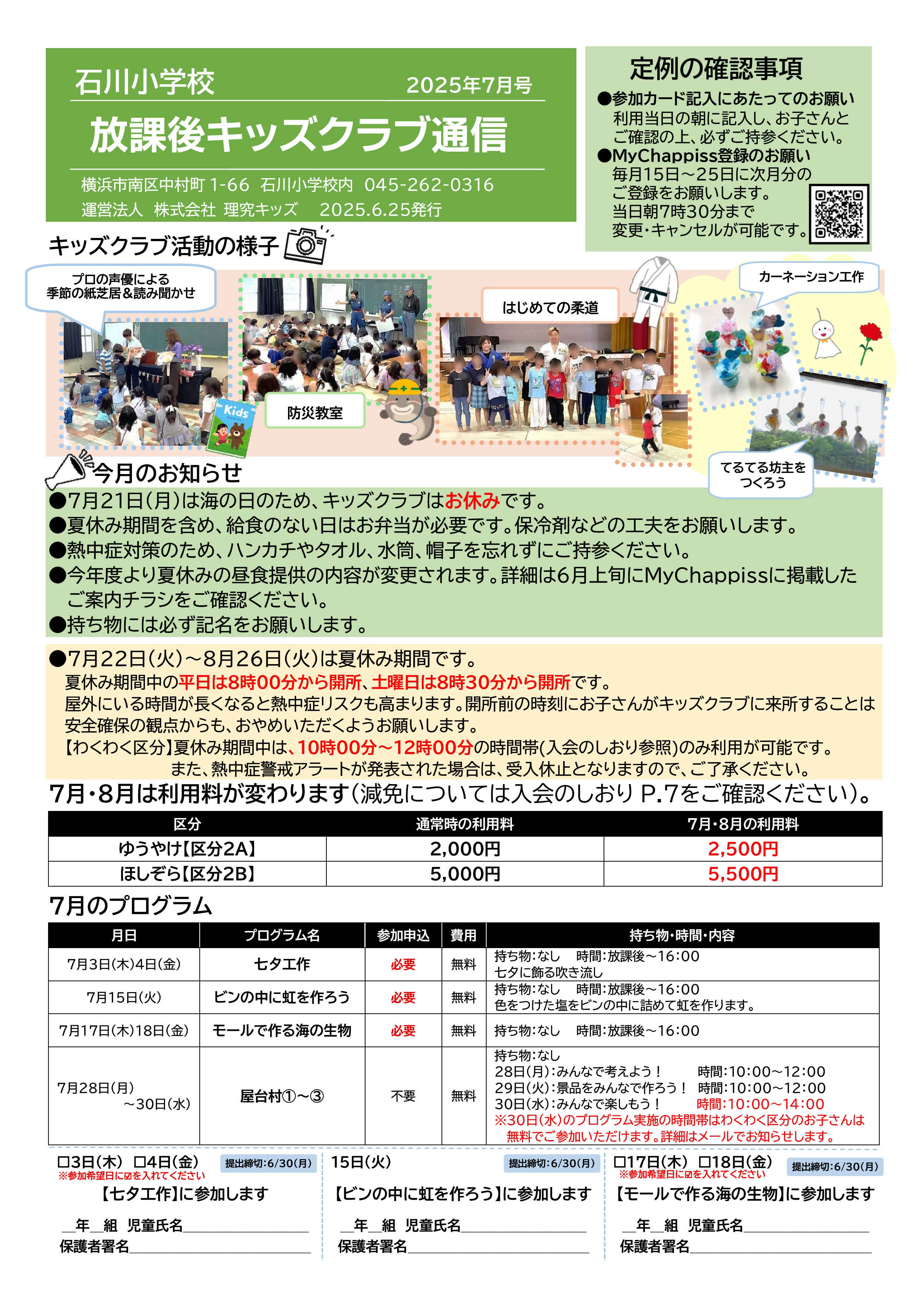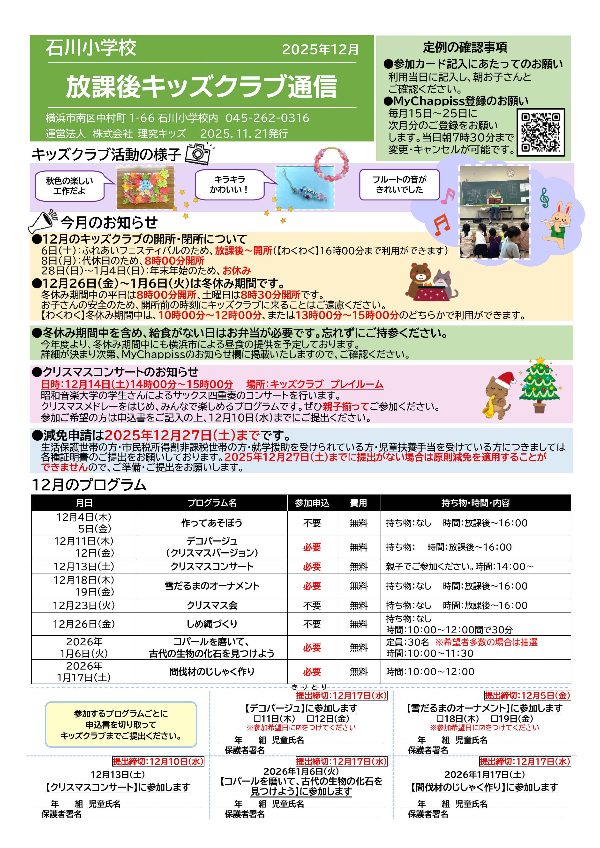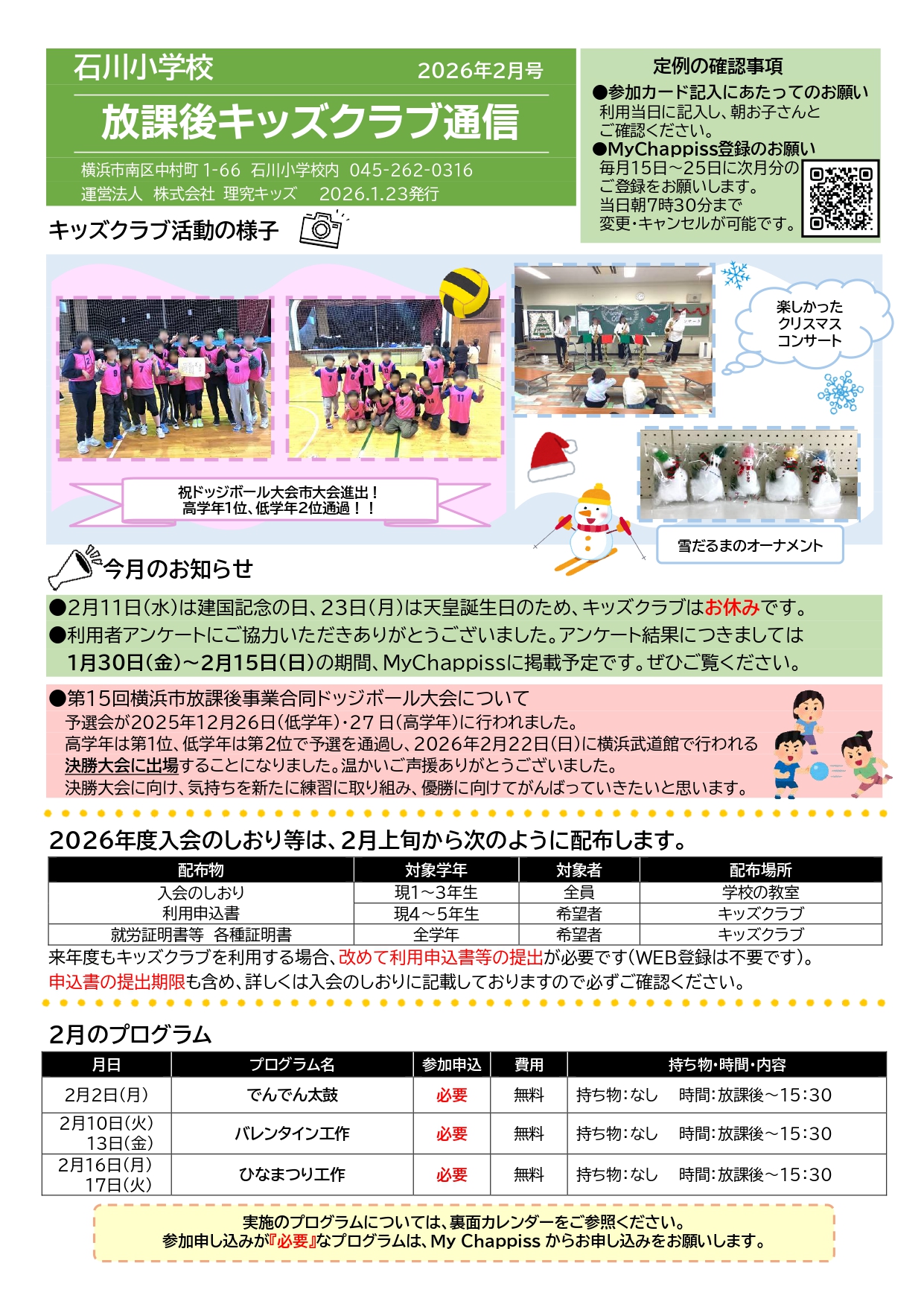 今月の放課後キッズクラブ通信
