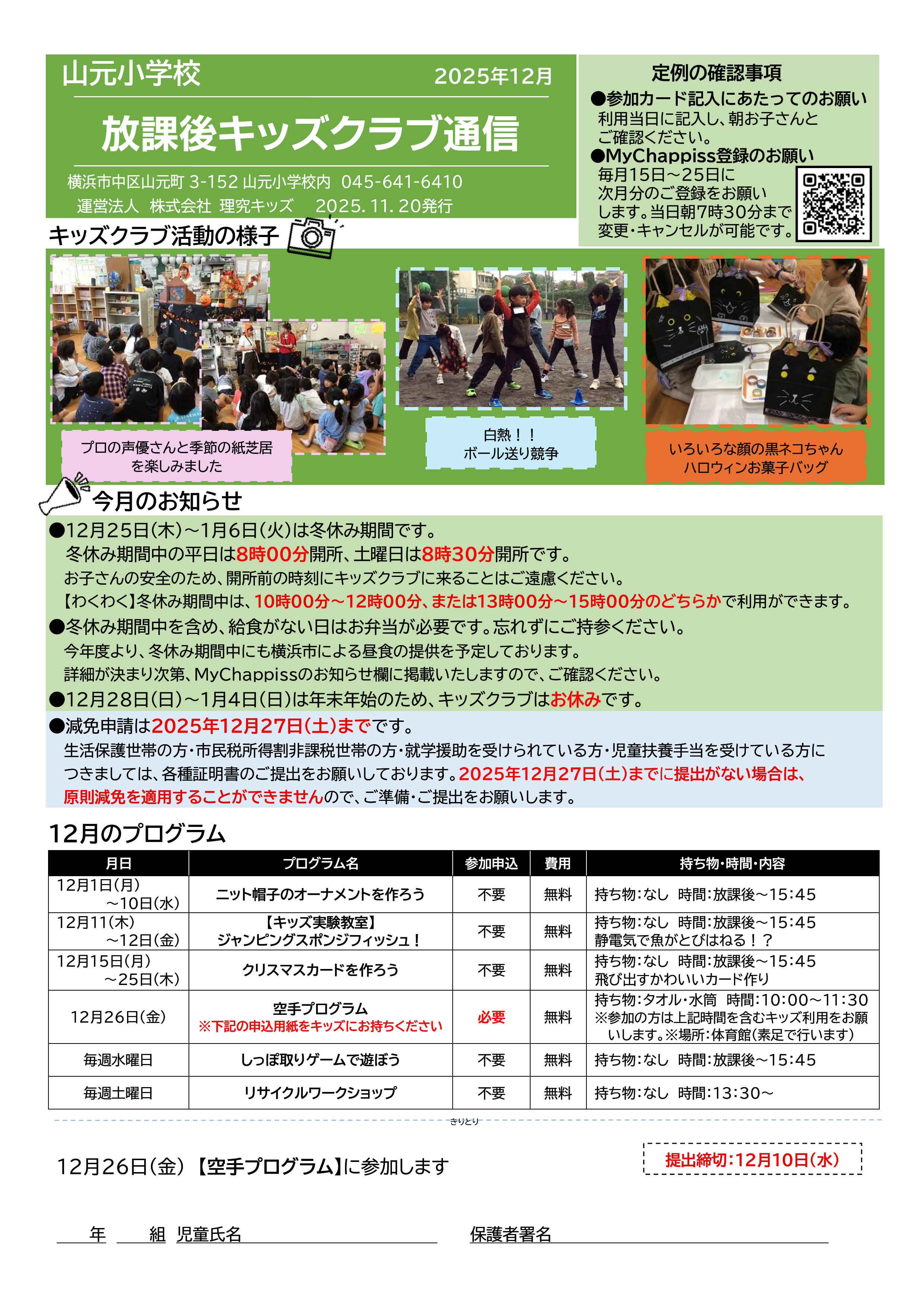 今月の放課後キッズクラブ通信