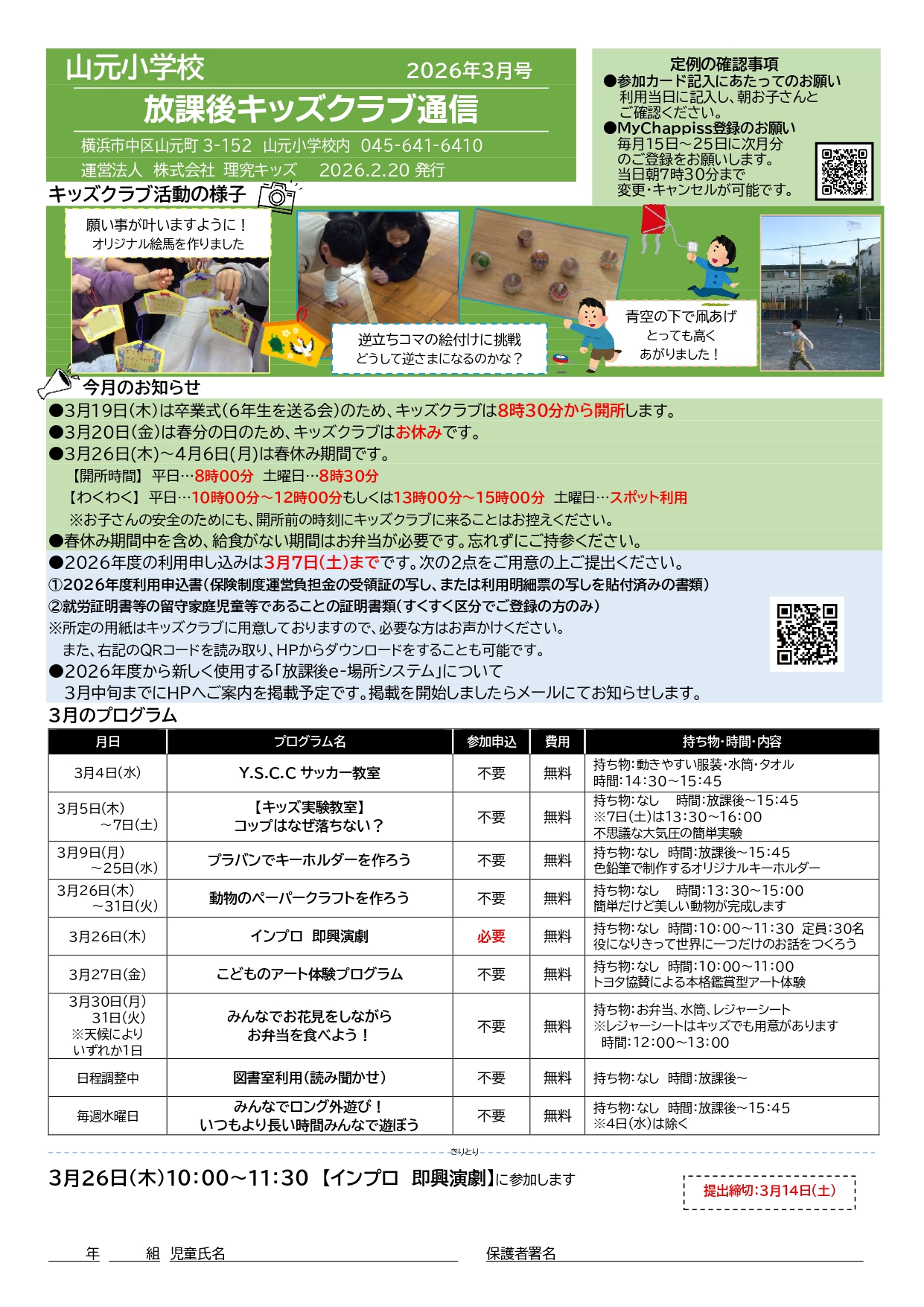 - キッズクラブ運営方針(PDFダウンロード) ※2026年度「運営方針」更新