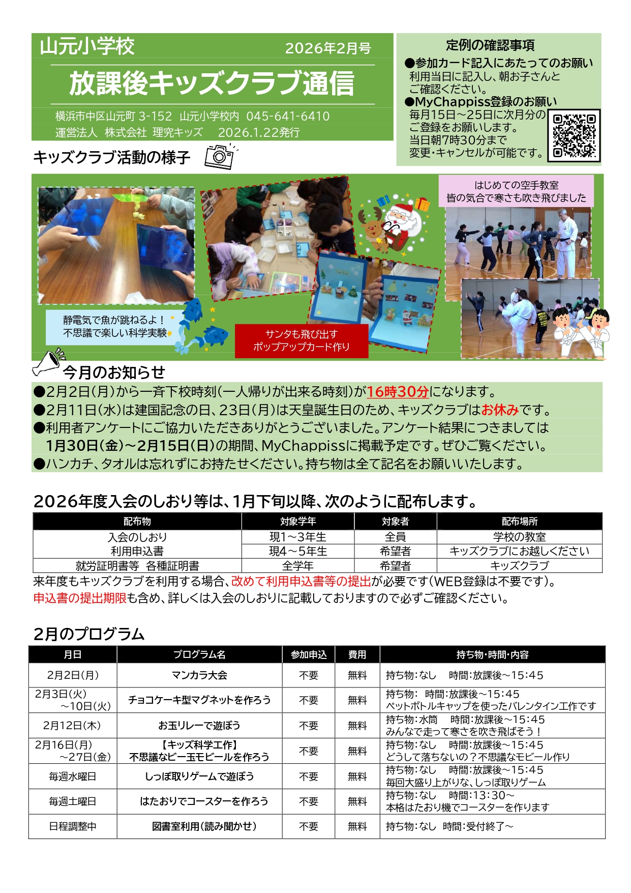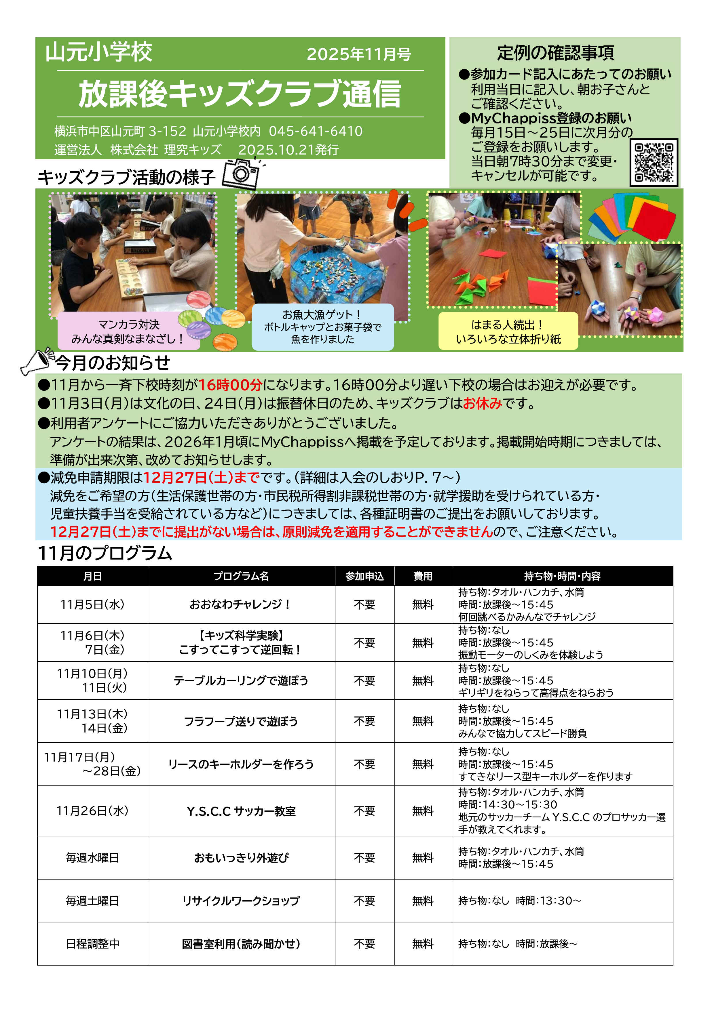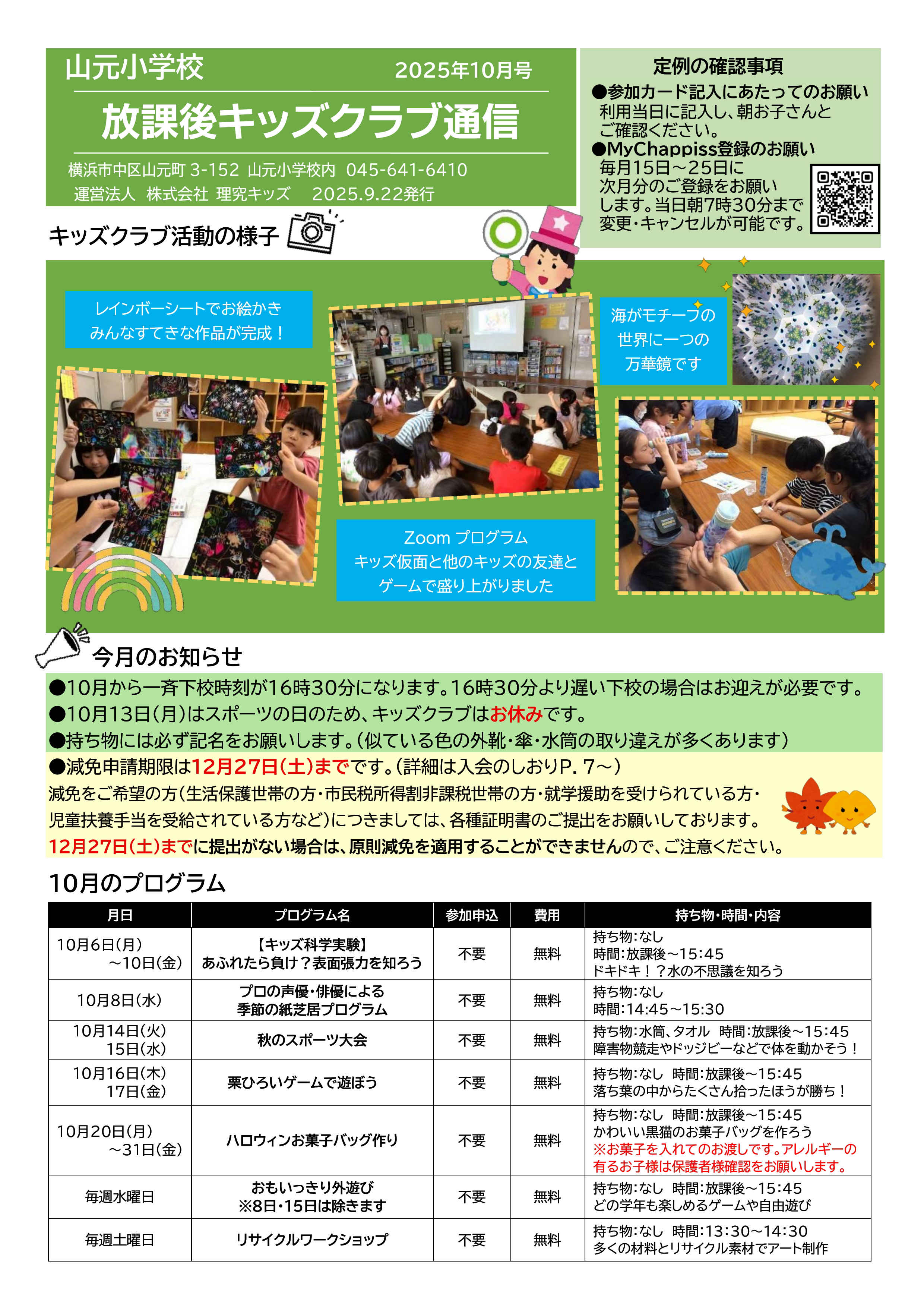 今月の放課後キッズクラブ通信