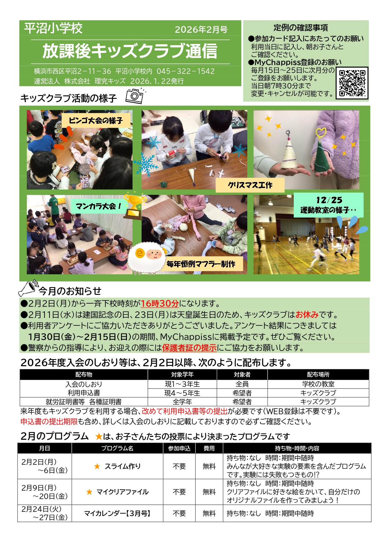 今月の放課後キッズクラブ通信