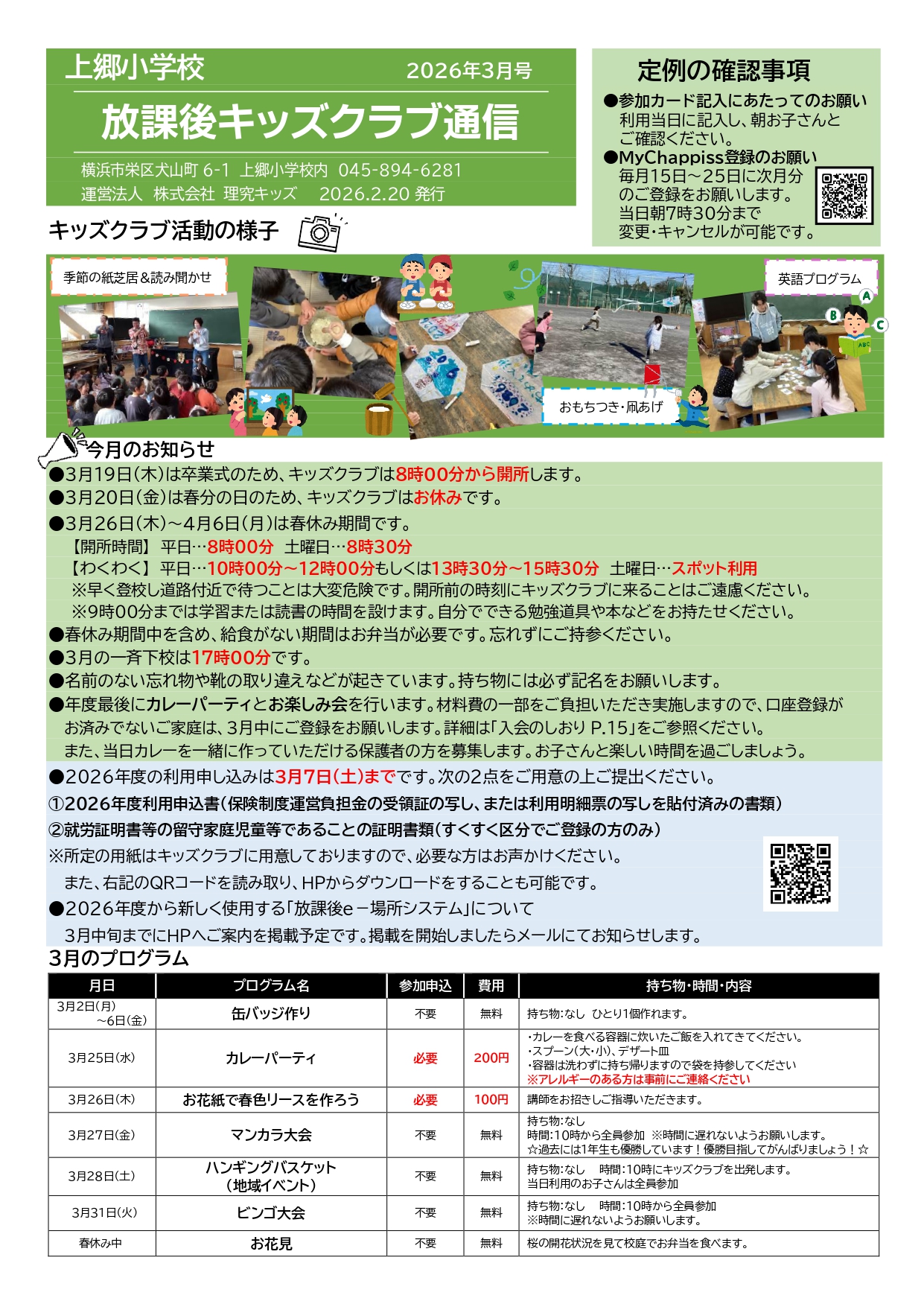 - キッズクラブ運営方針(PDFダウンロード) ※2026年度「運営方針」更新