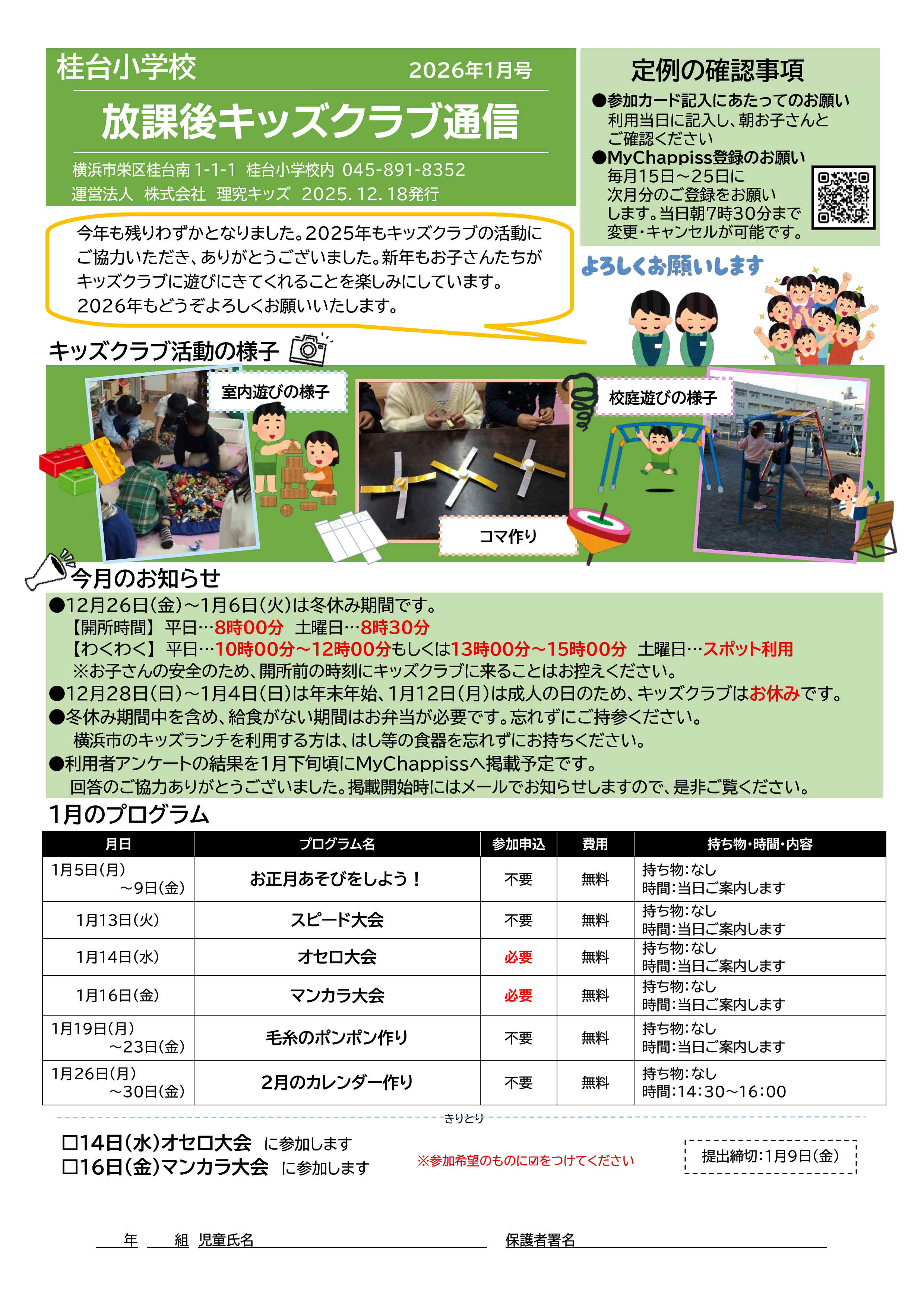 今月の放課後キッズクラブ通信
