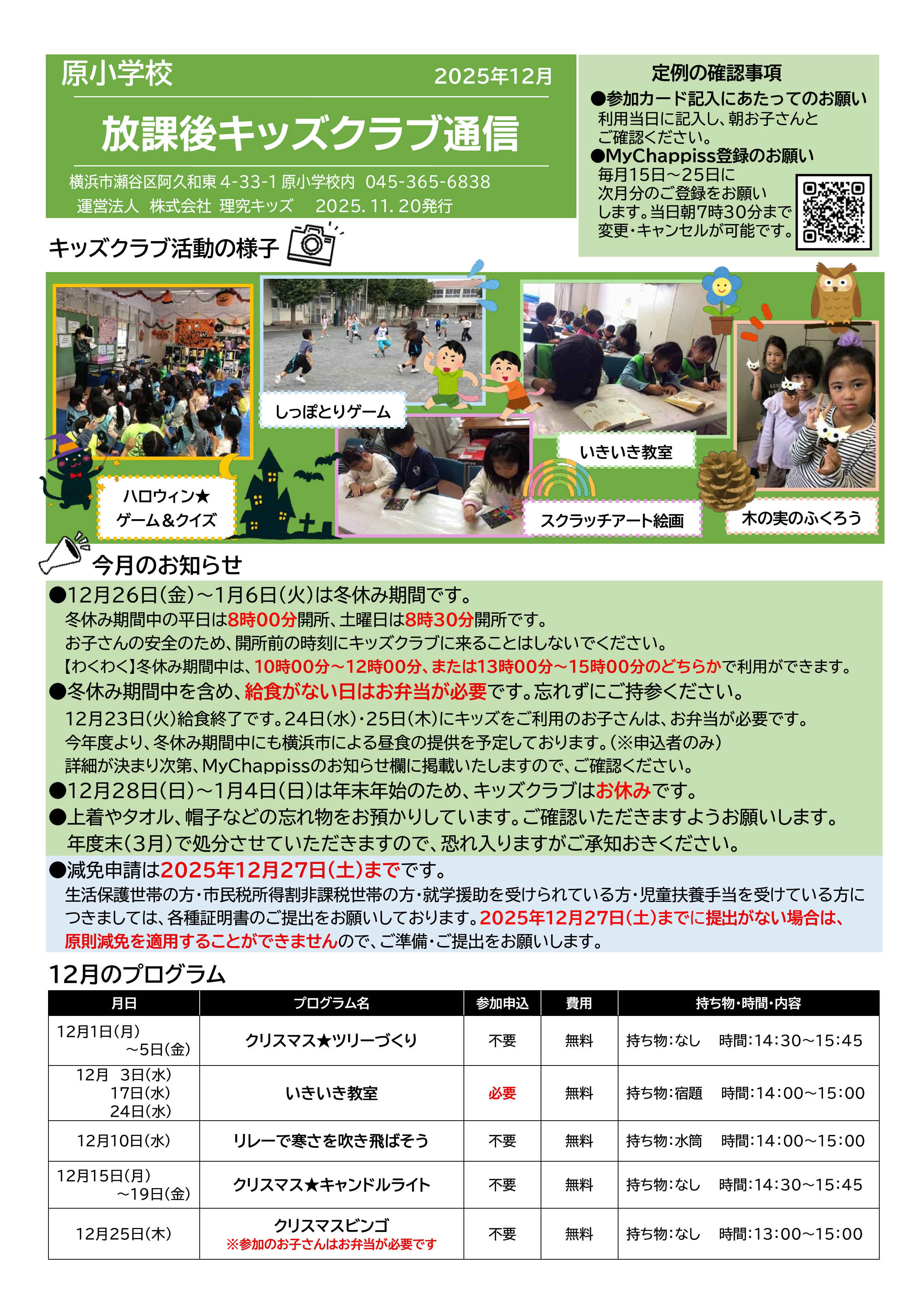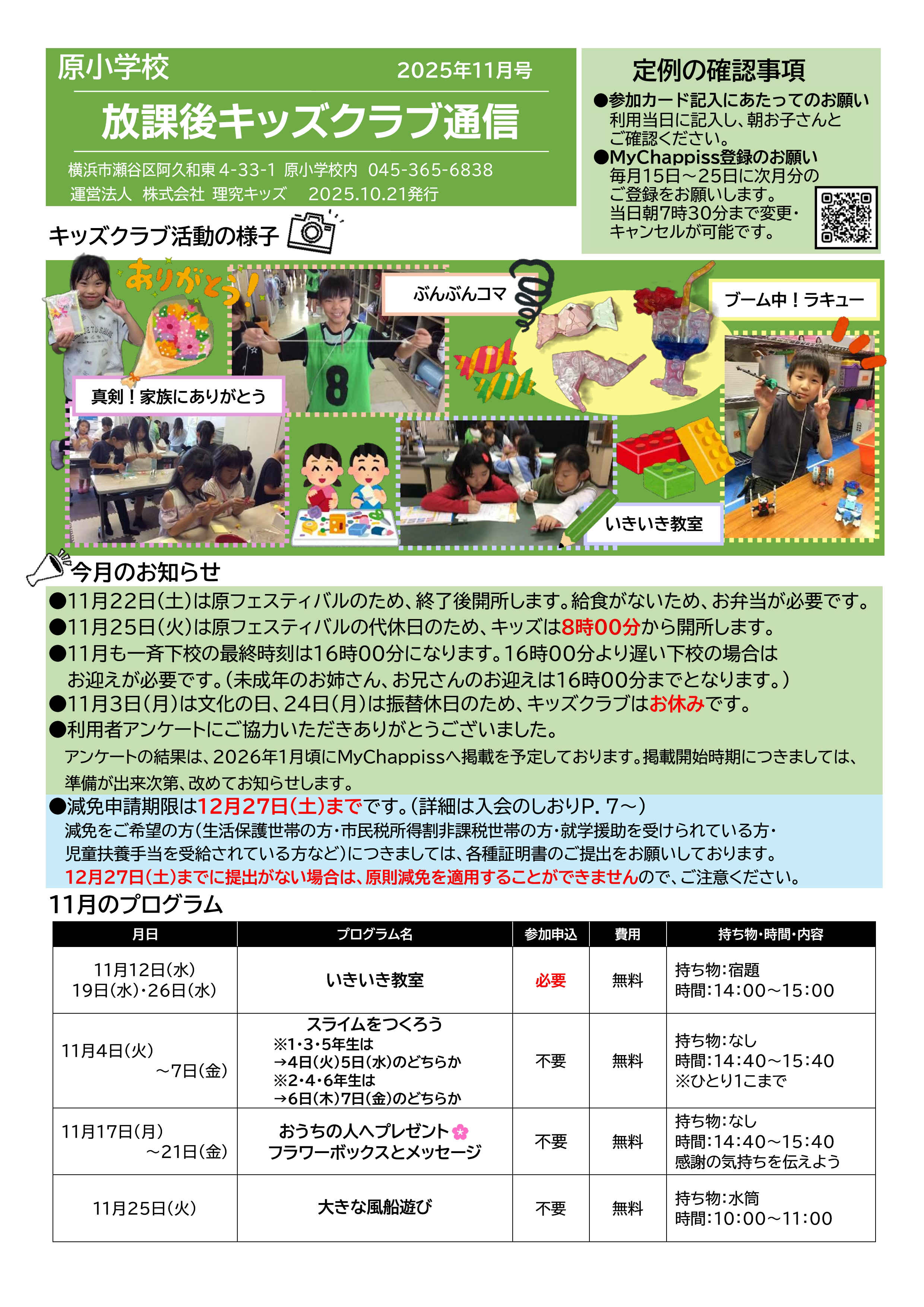 今月の放課後キッズクラブ通信