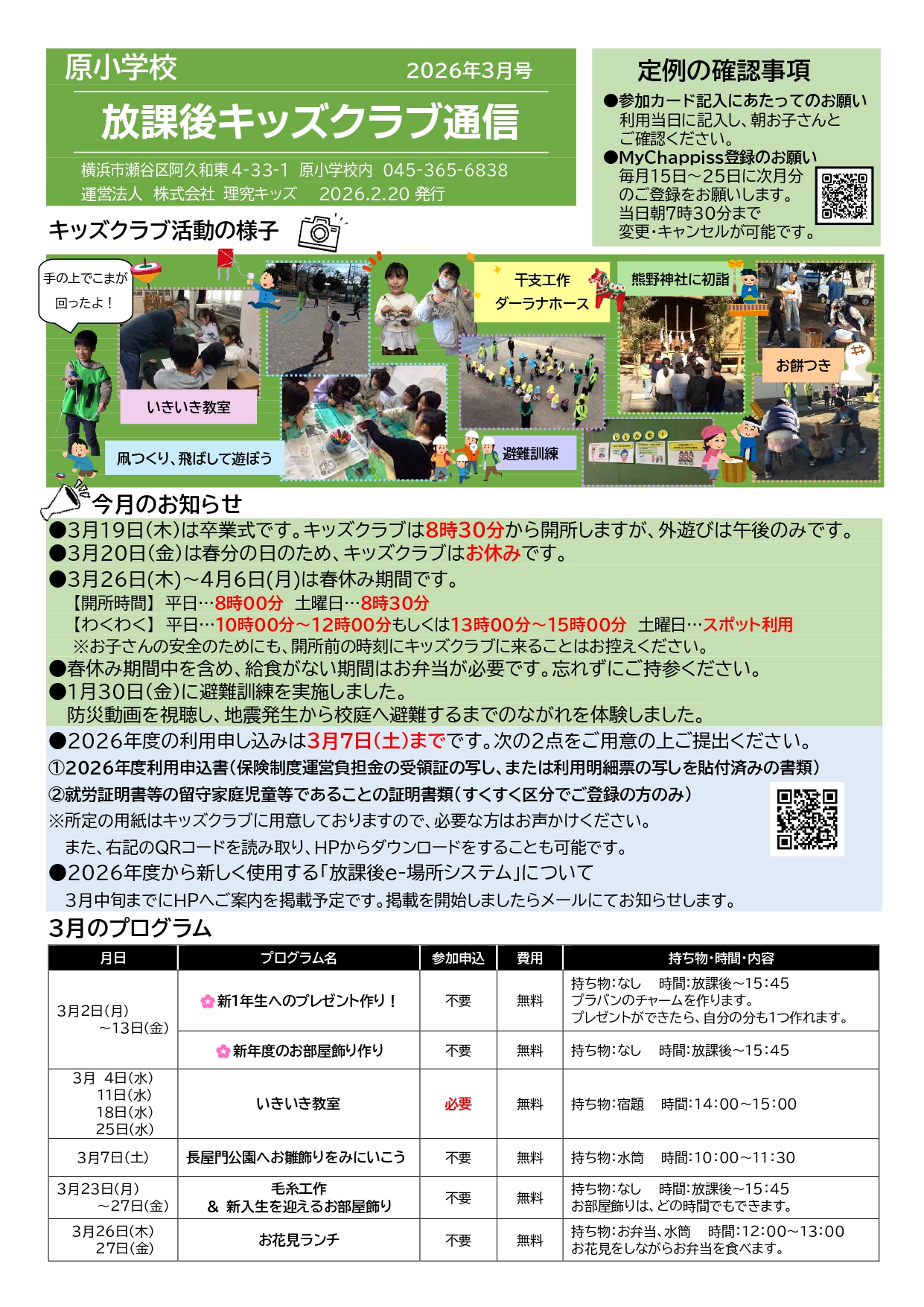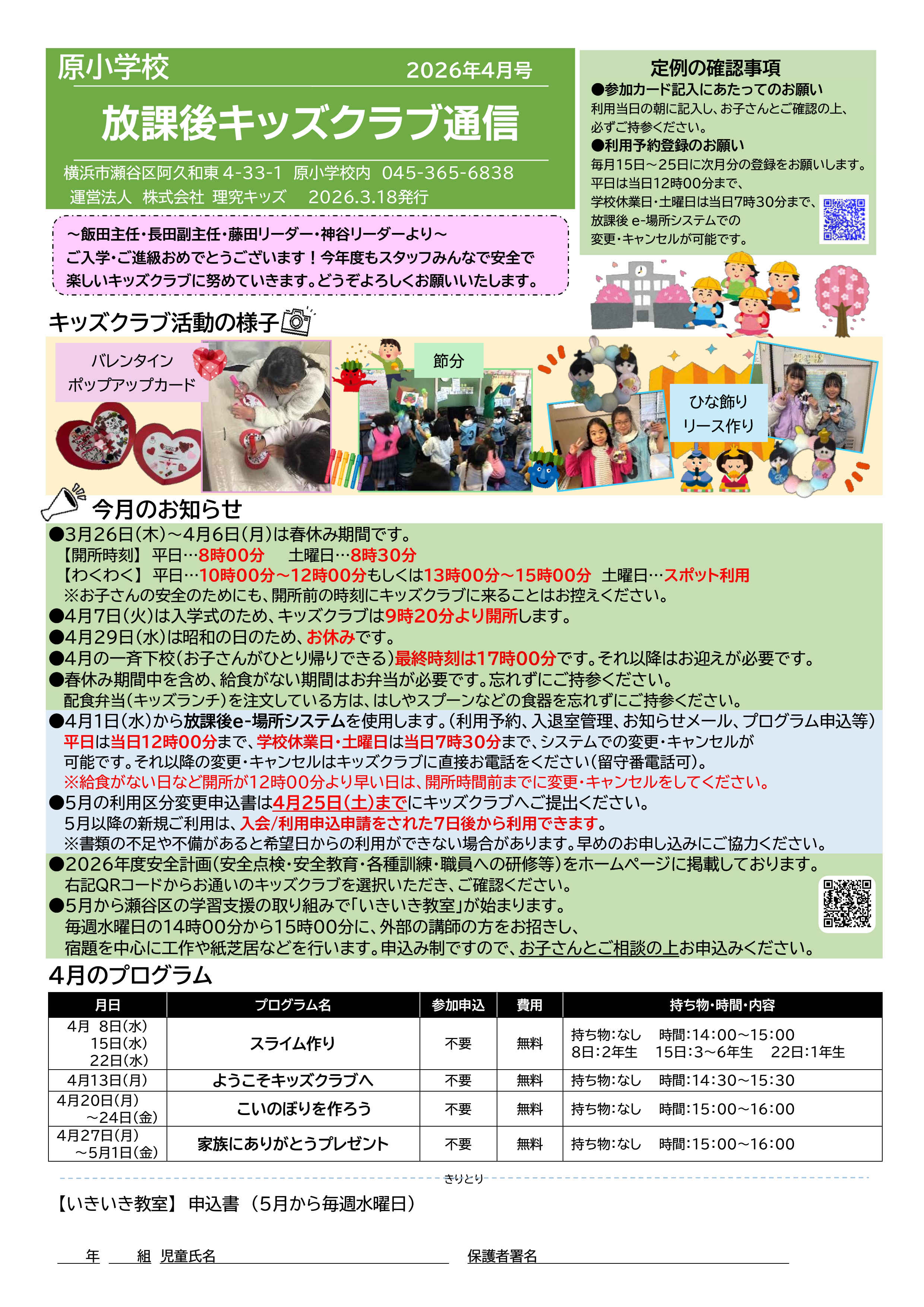 - キッズクラブ運営方針(PDFダウンロード) ※2026年度「運営方針」更新