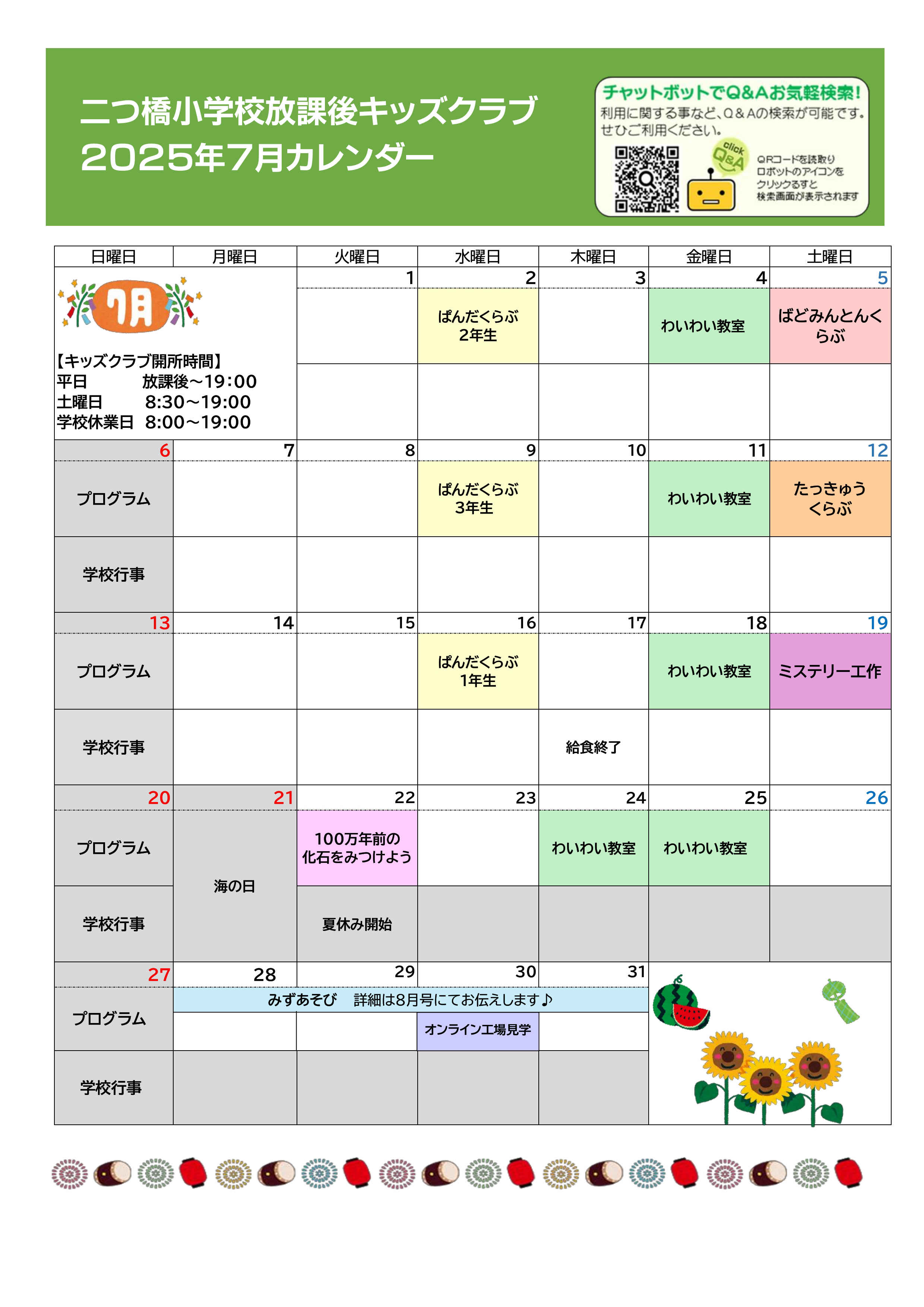 ※交通機関が不通となる場合もありますので、できるだけ早いお迎えをお願いします。※特別警報発表時は帰宅の安全が確保されるまで、お子さんは利用区分にかかわらず、放課後キッズクラブで留め置きとなります。