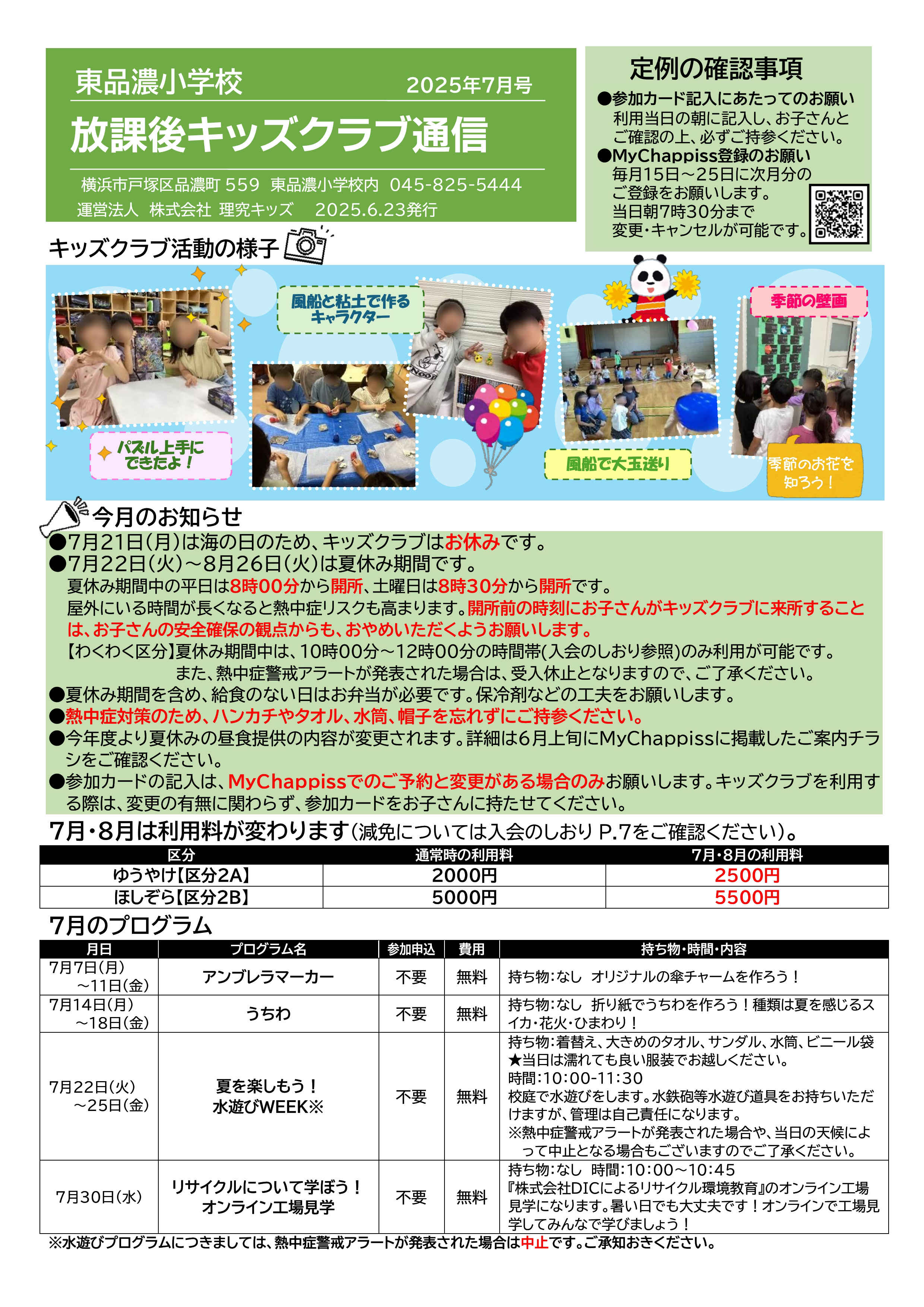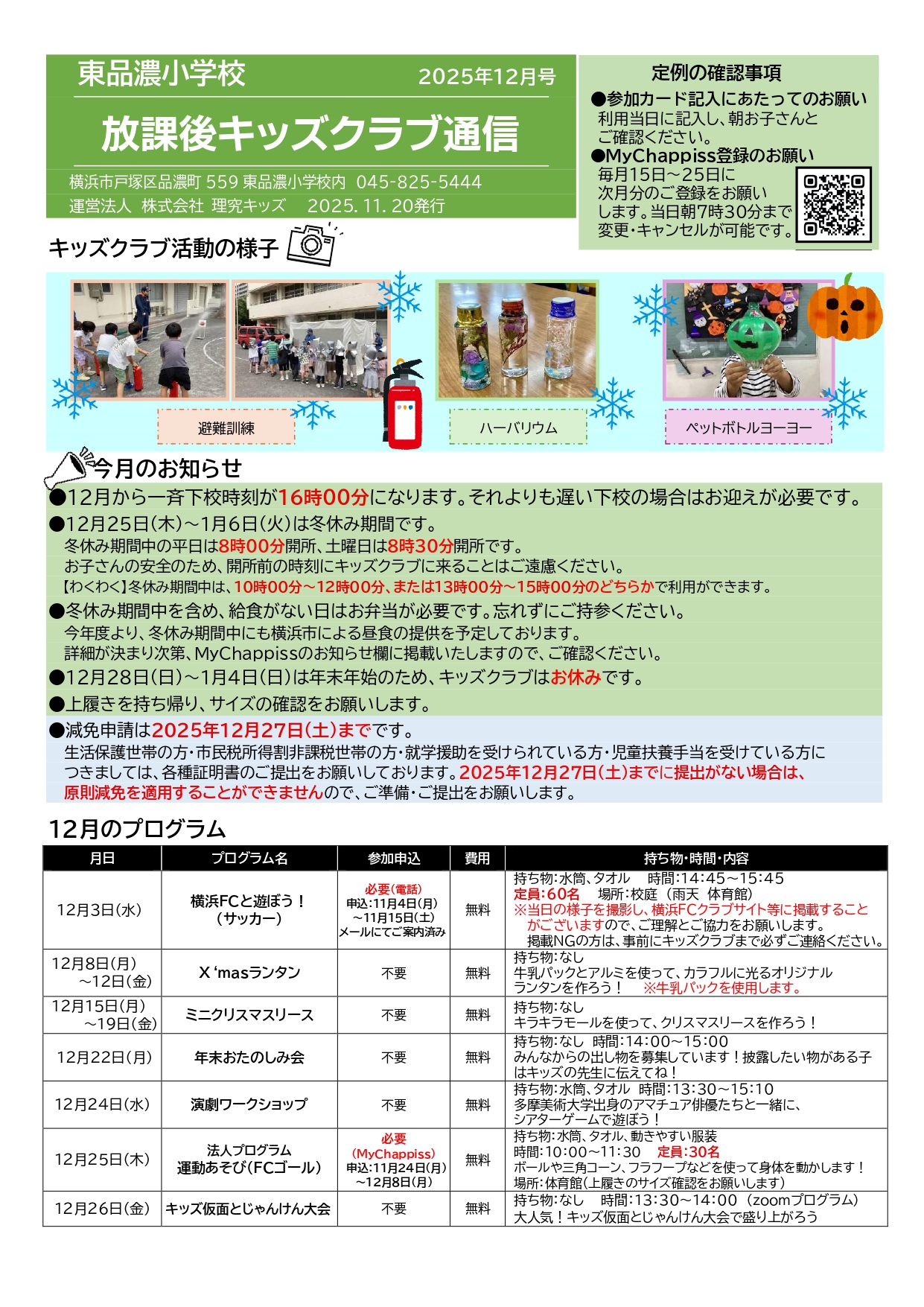 ※交通機関が不通となる場合もありますので、できるだけ早いお迎えをお願いします。※特別警報発表時は帰宅の安全が確保されるまで、お子さんは利用区分にかかわらず、放課後キッズクラブで留め置きとなります。
