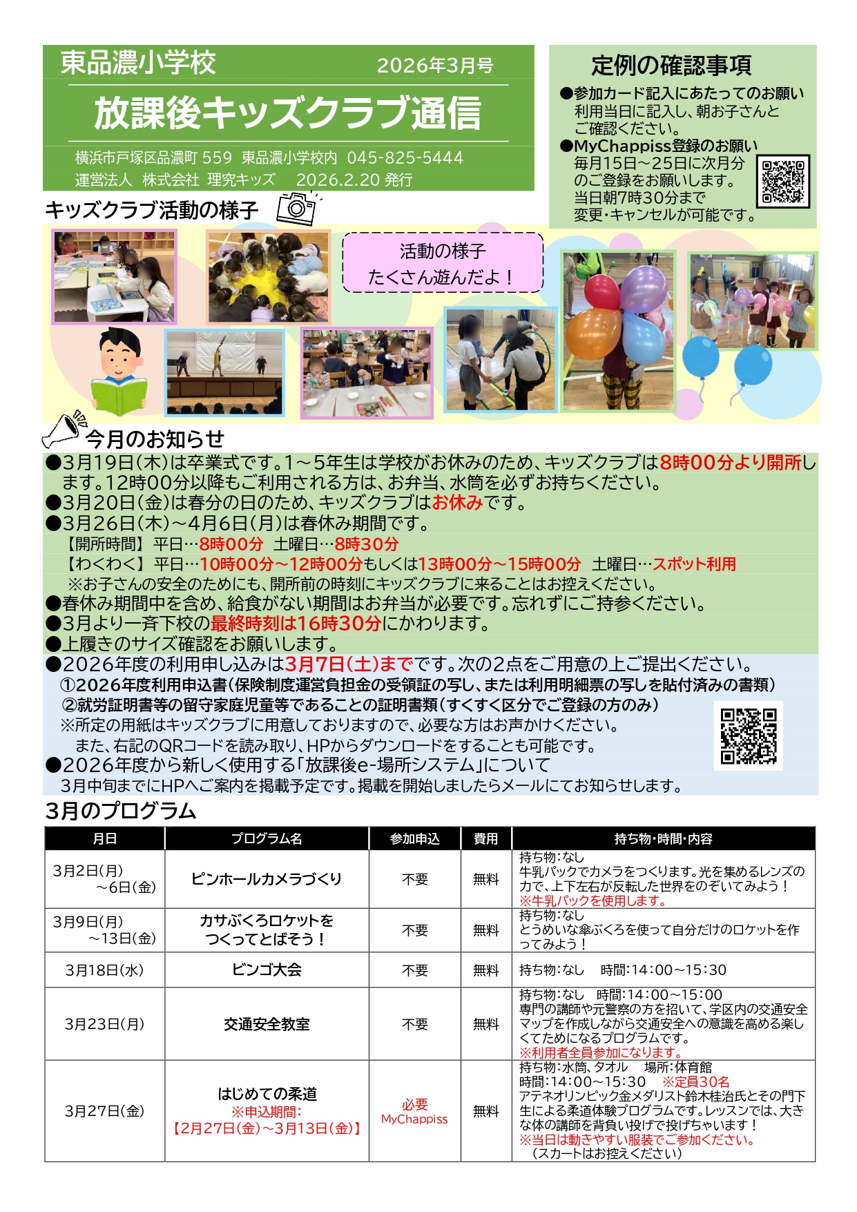 - キッズクラブ運営方針(PDFダウンロード) ※2026年度「運営方針」更新