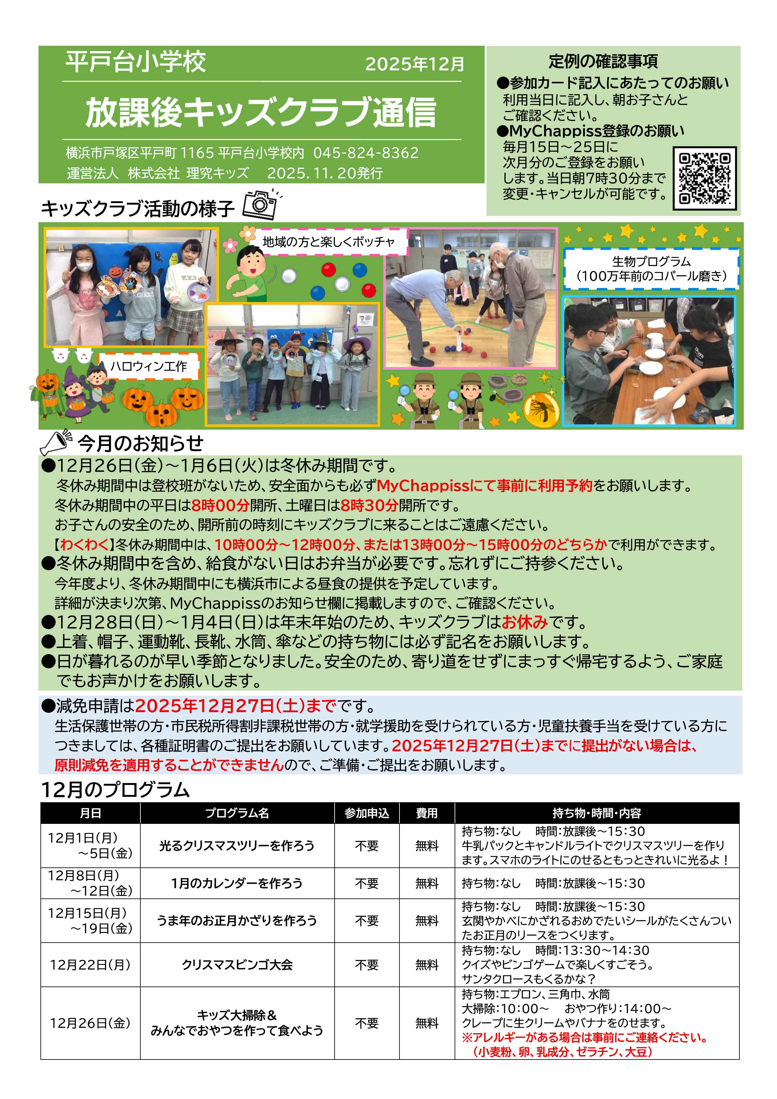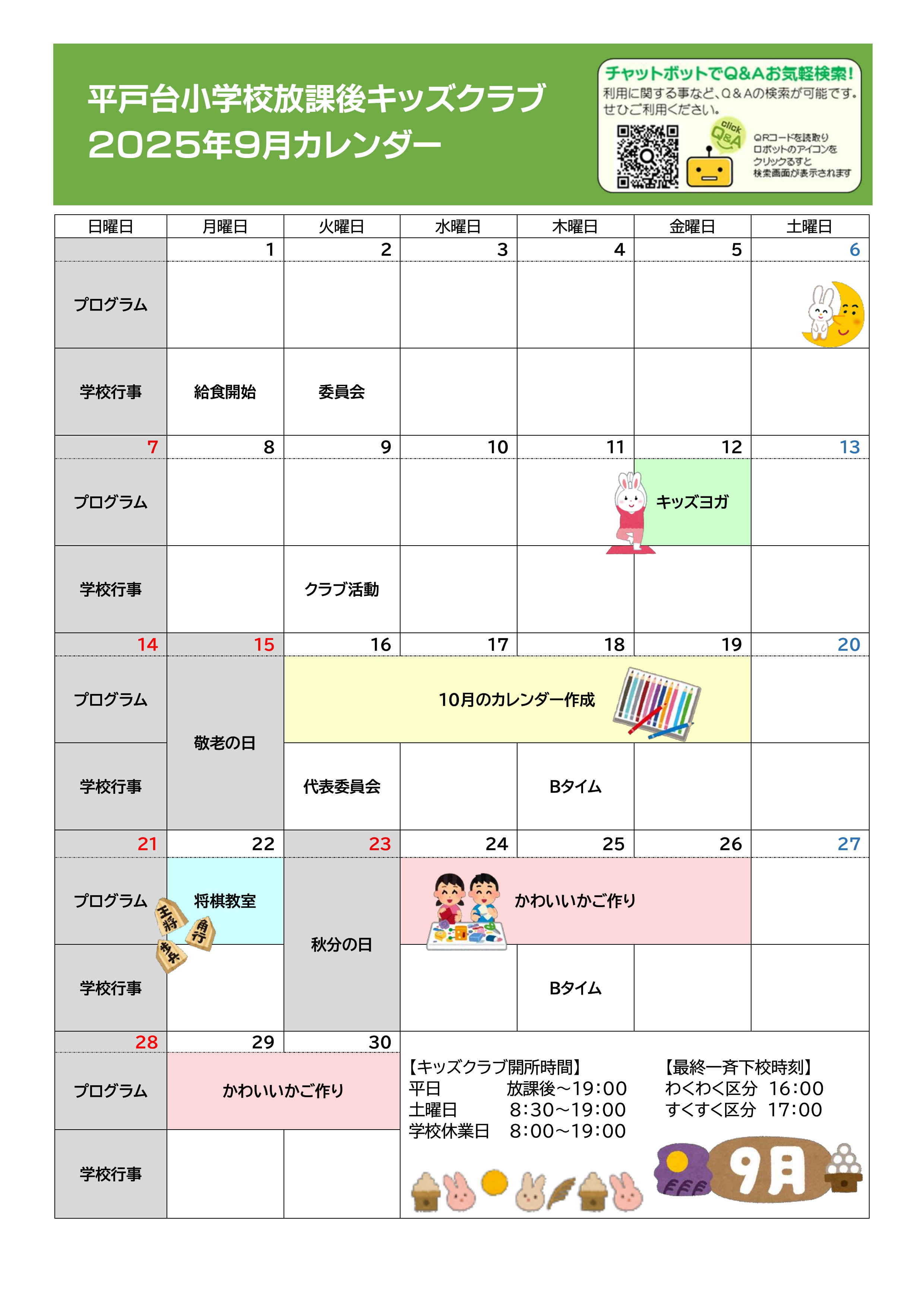 警報発表時等で通常と開所時間が異なる場合は、スタッフが放課後キッズクラブに到着してから利用可能になります。受け入れ可能になり次第、メールにてお知らせします。