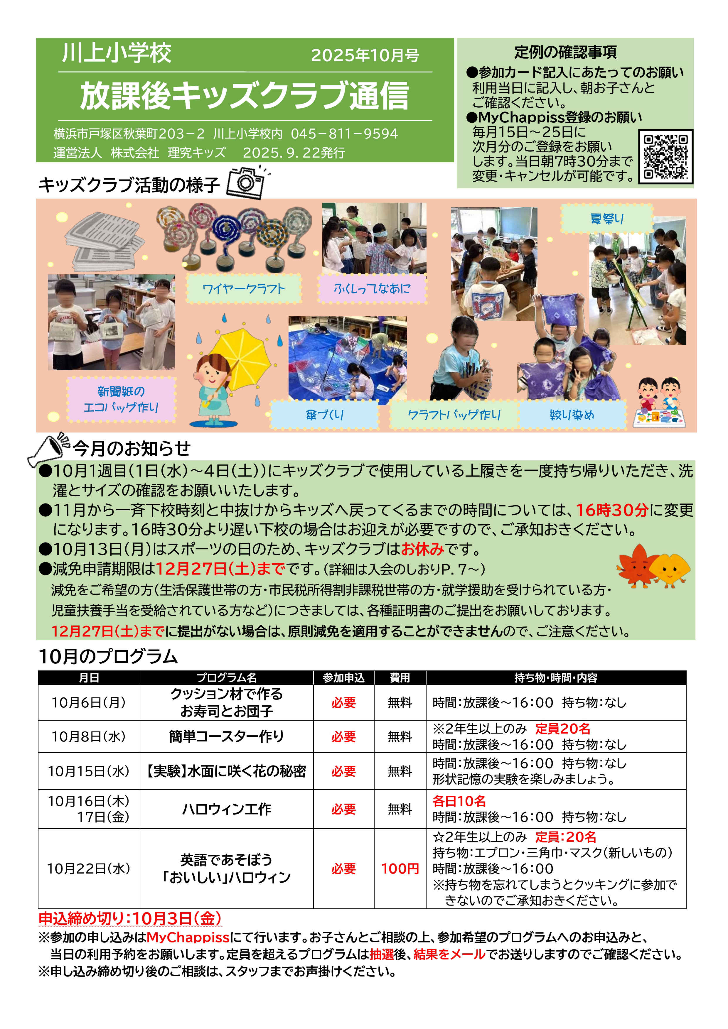- キッズカード(利用する日は毎回保護者の方が記入し、お持ちください)