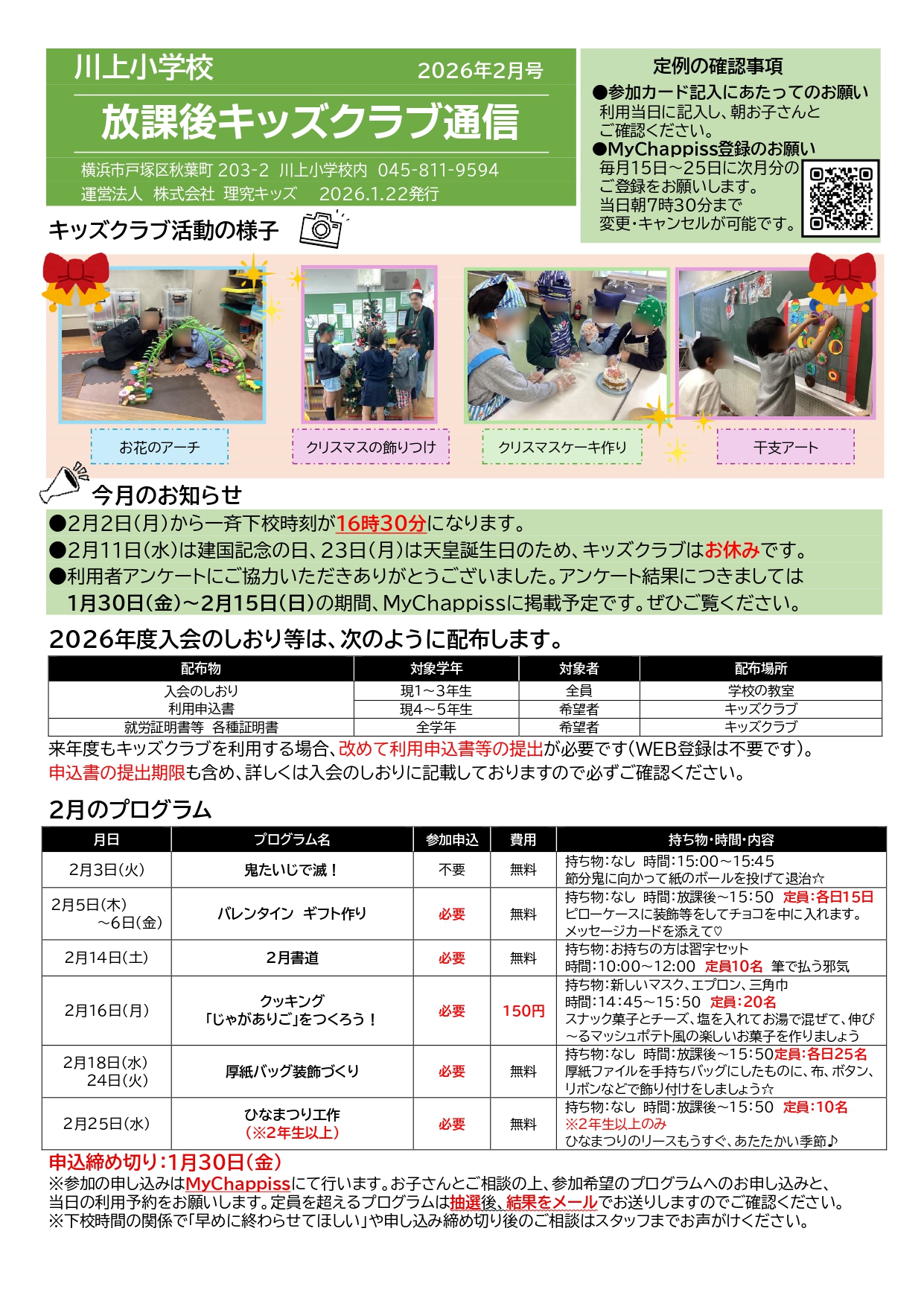 今月の放課後キッズクラブ通信